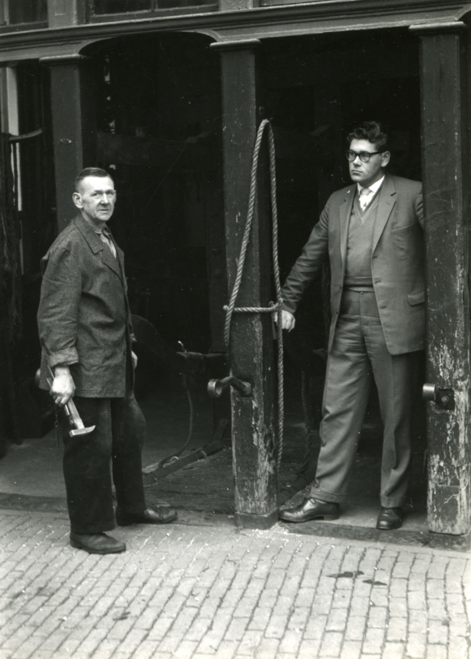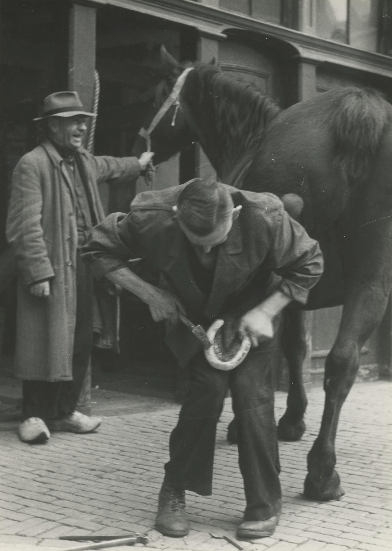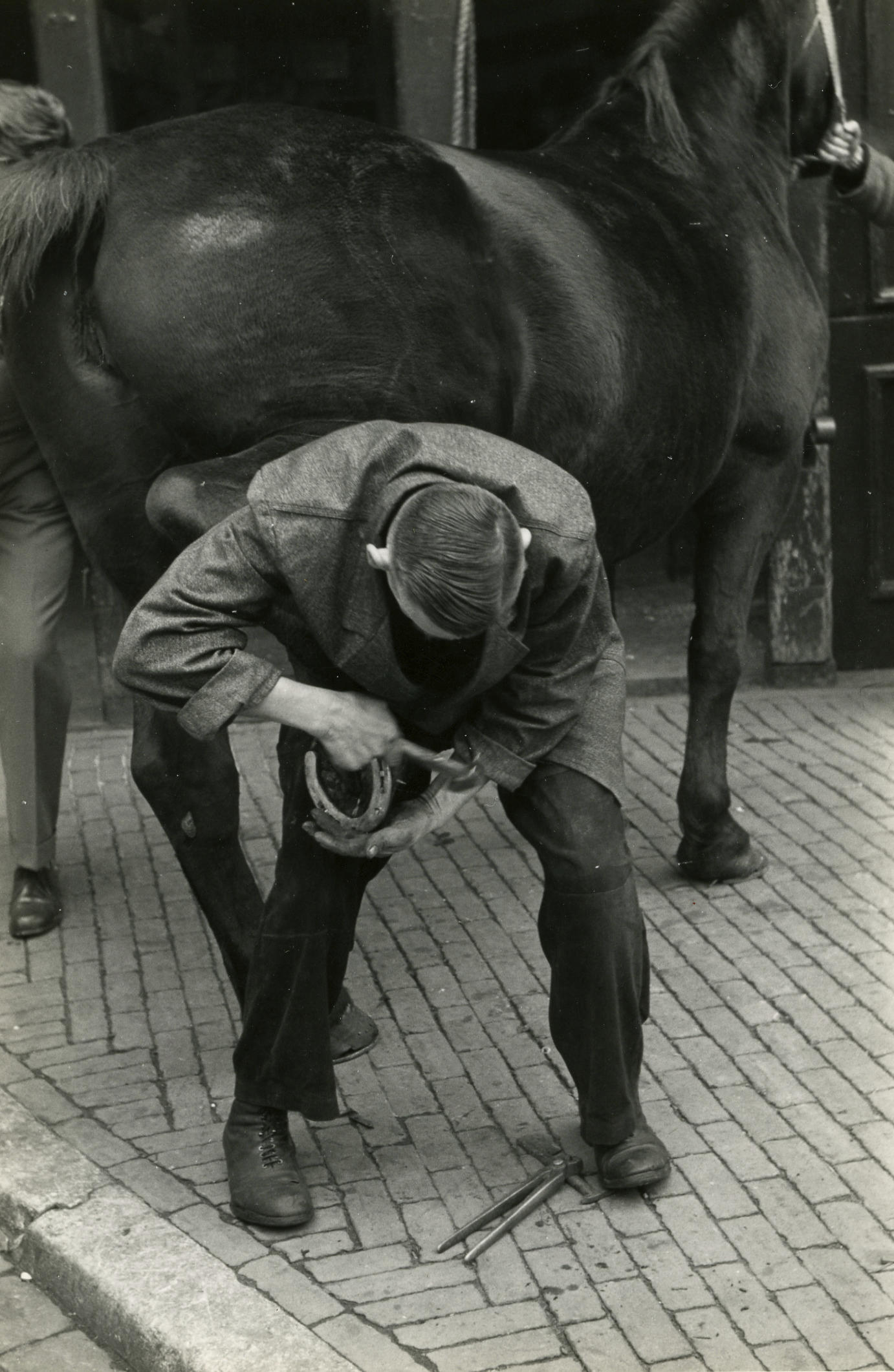 Hoefsmederij Poppe, Zwolle, 1960 (zwart-wit foto)