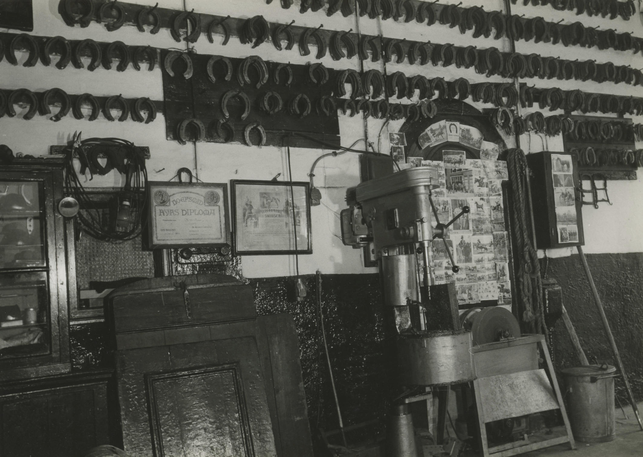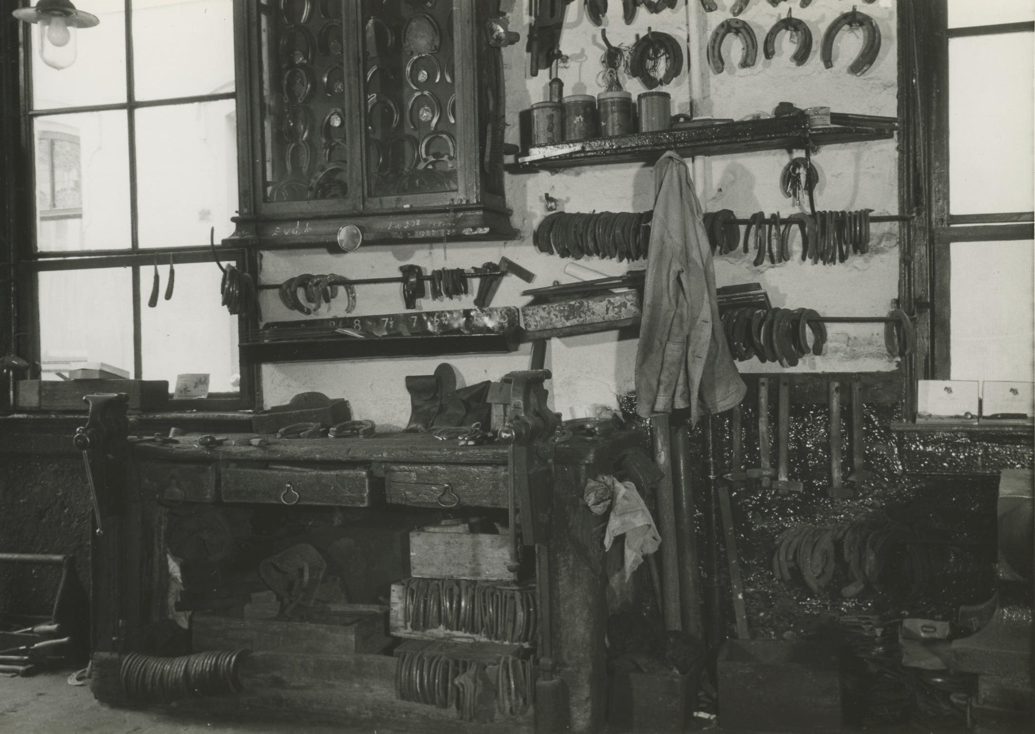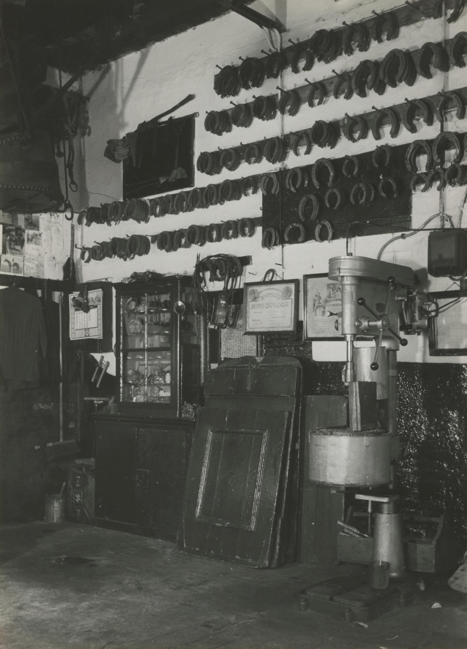 Hoefsmederij Poppe, Zwolle, 1960 (zwart-wit foto)