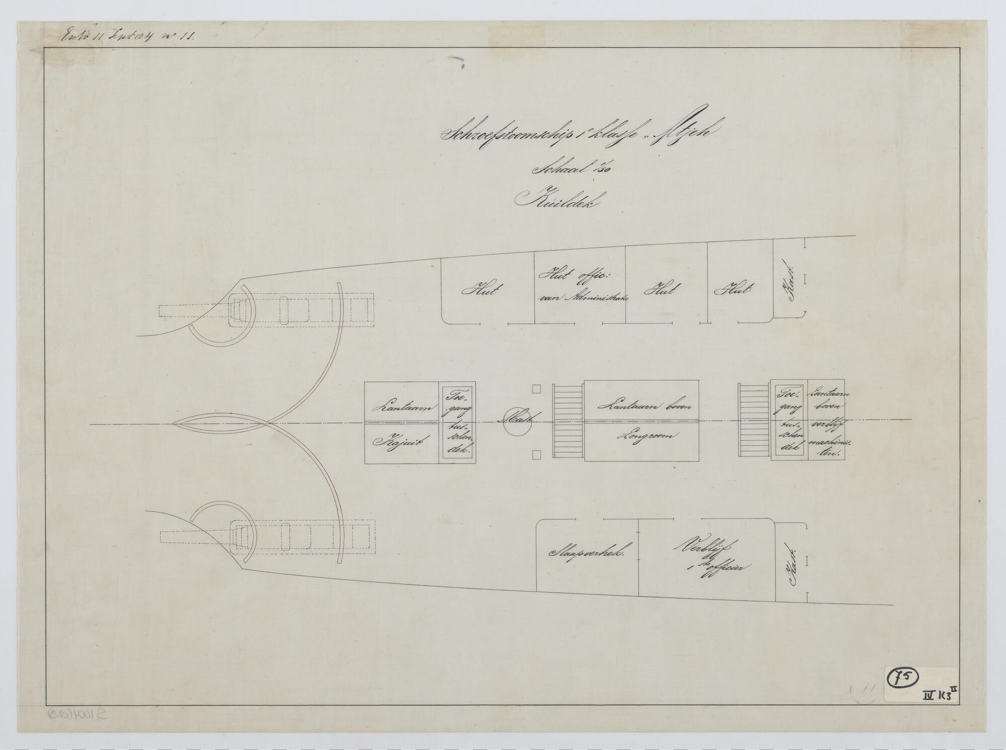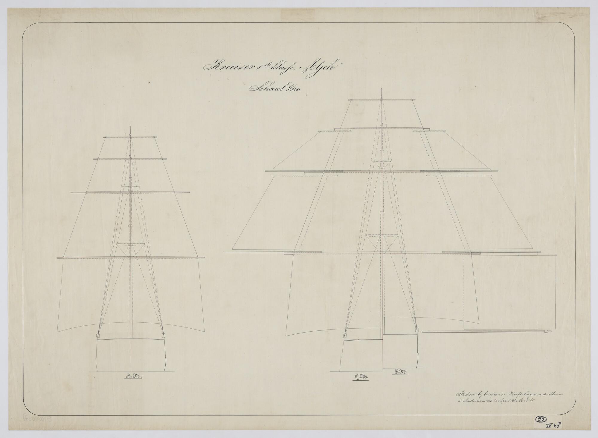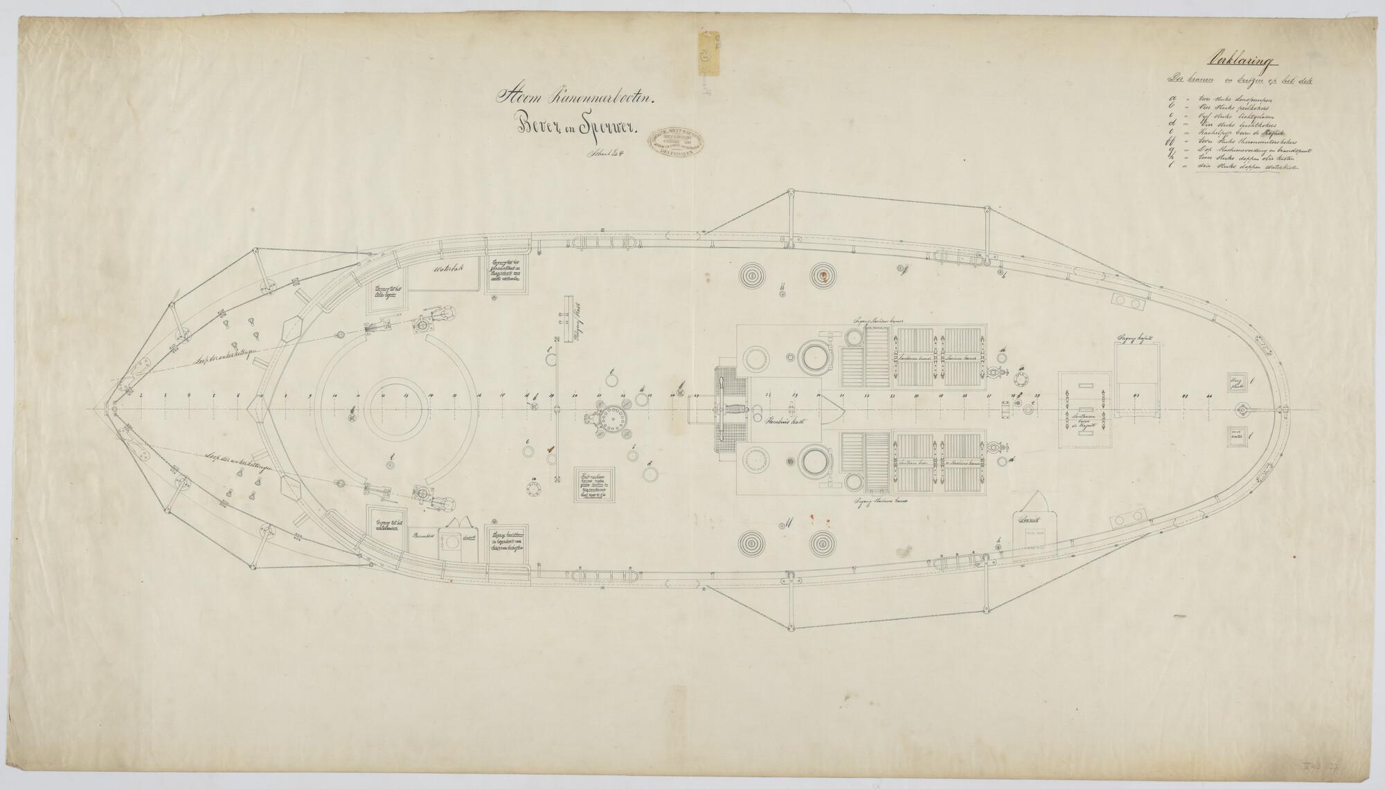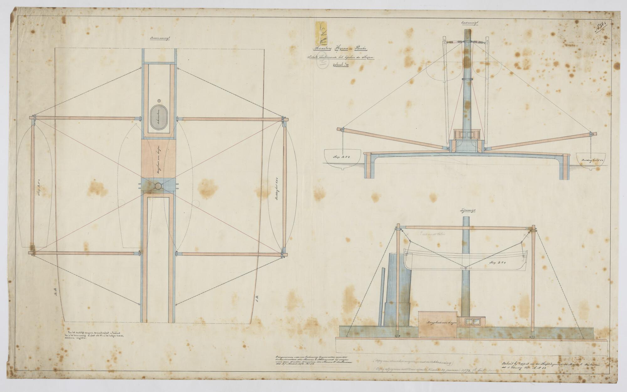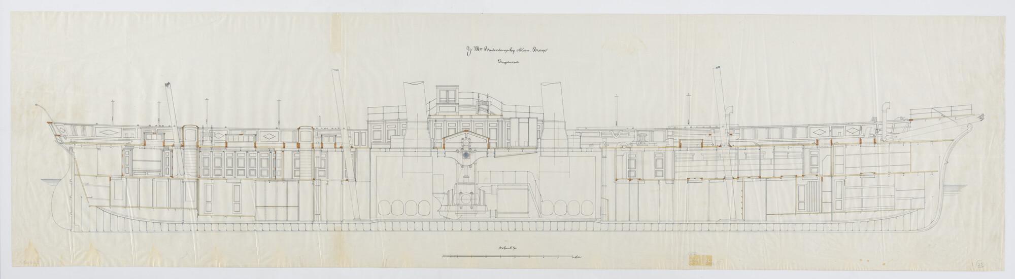 Zr.Ms. Hydrograaf, 1872. Tuigtekening en inwendige v...