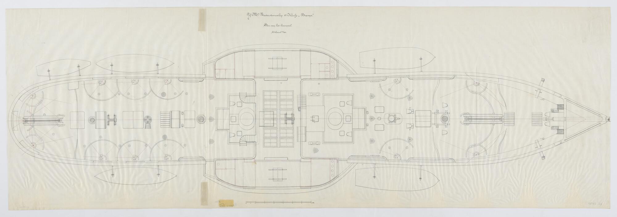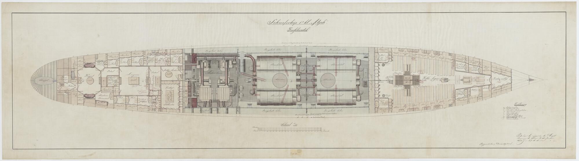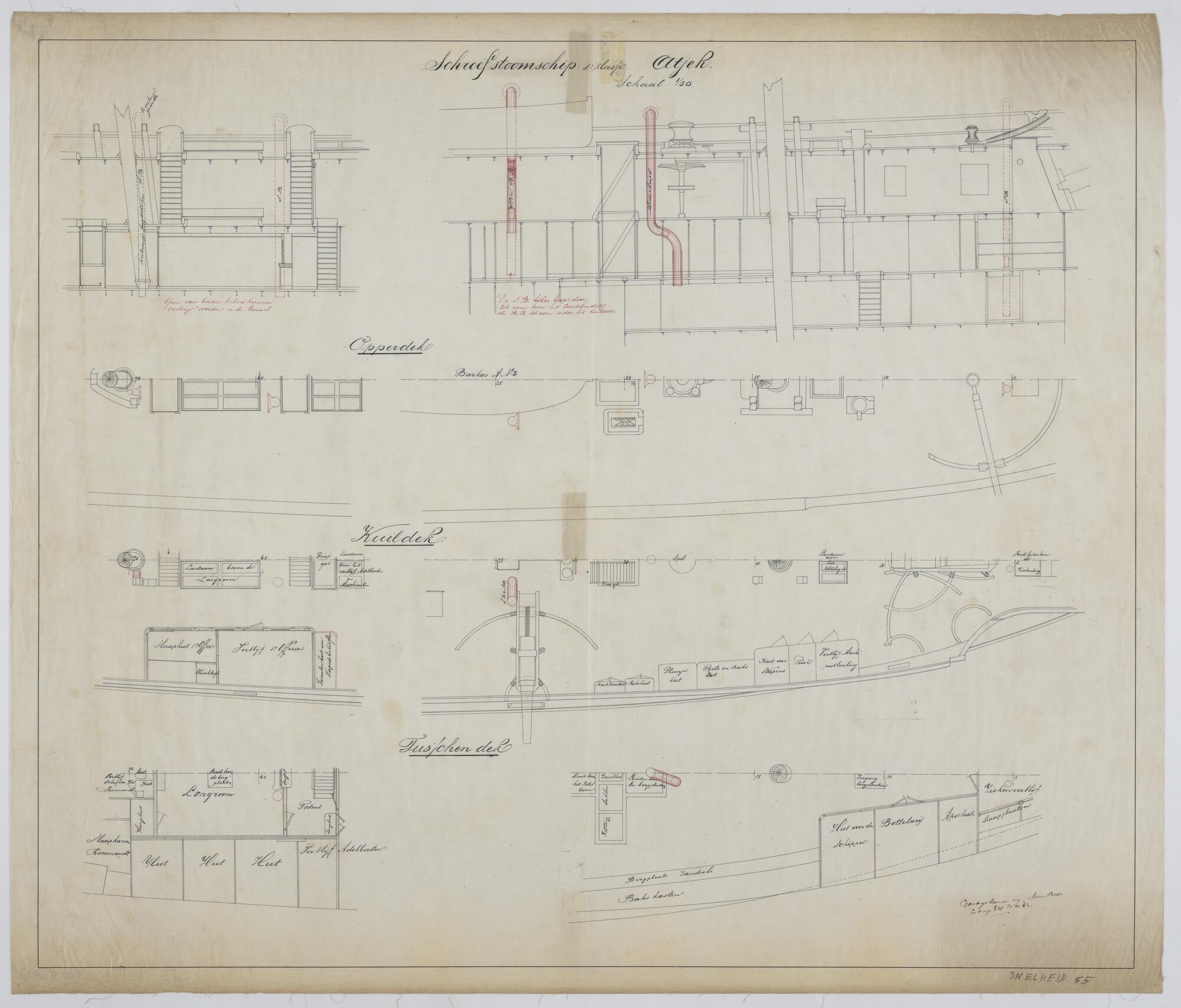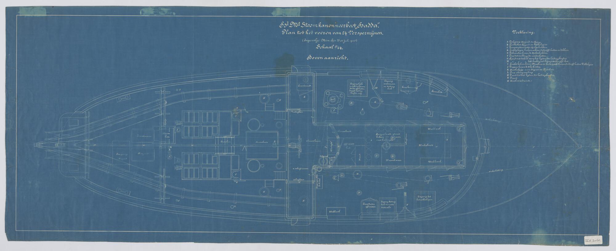 Zr.Ms. Hydrograaf, 1872. Tuigtekening en inwendige v...