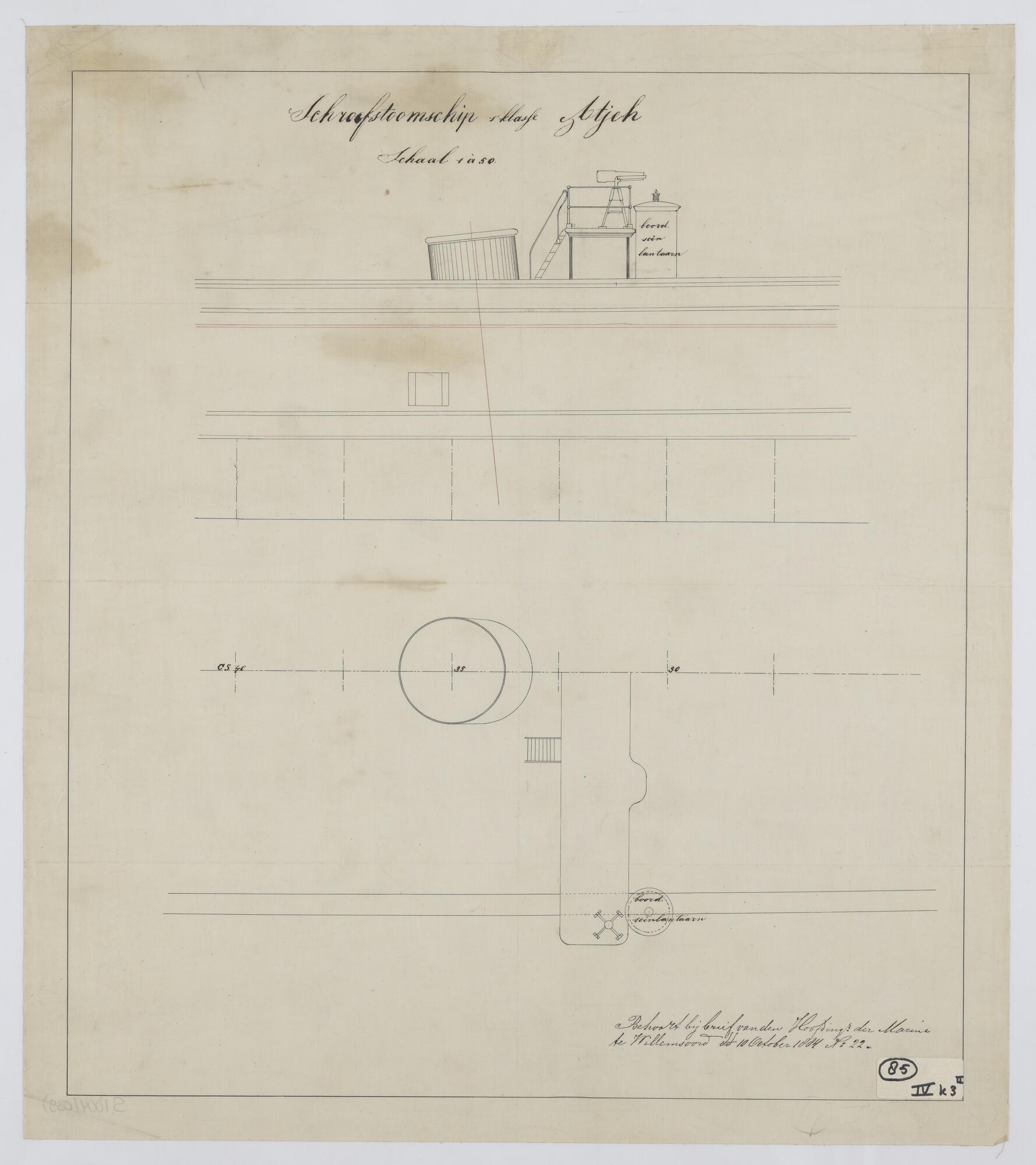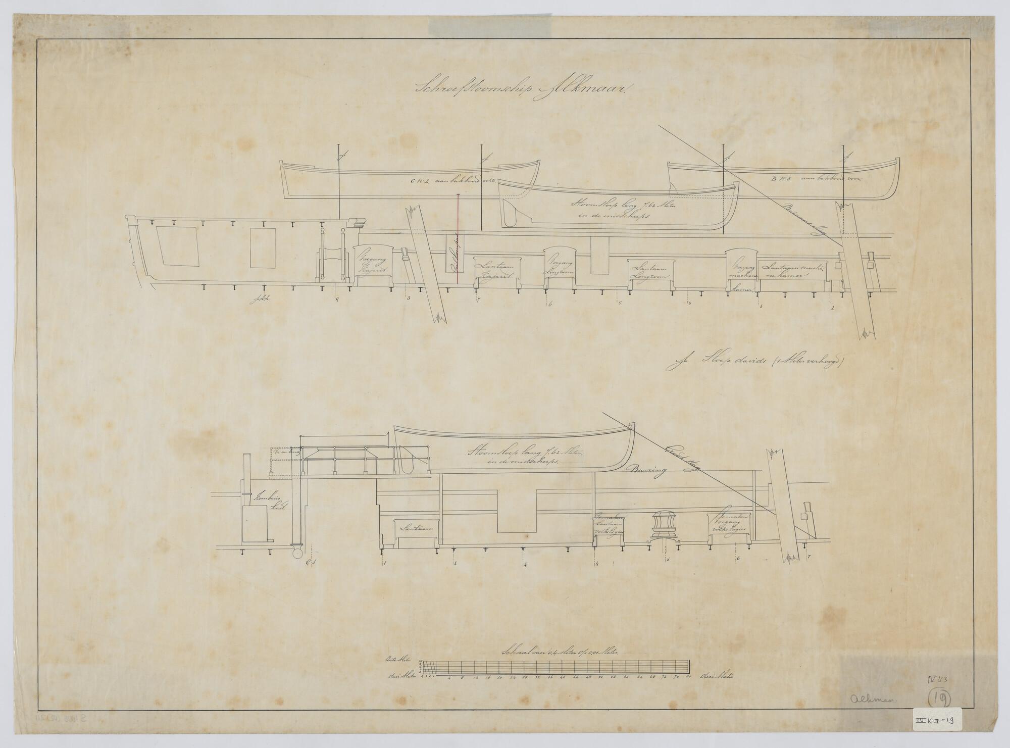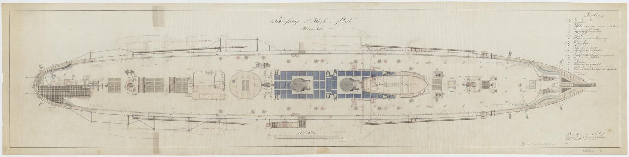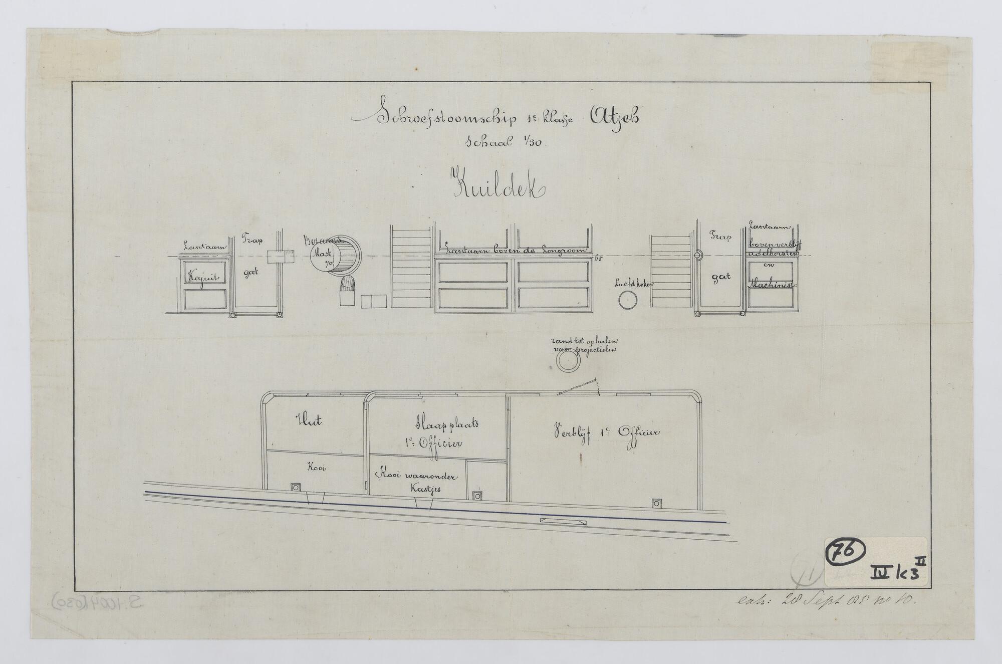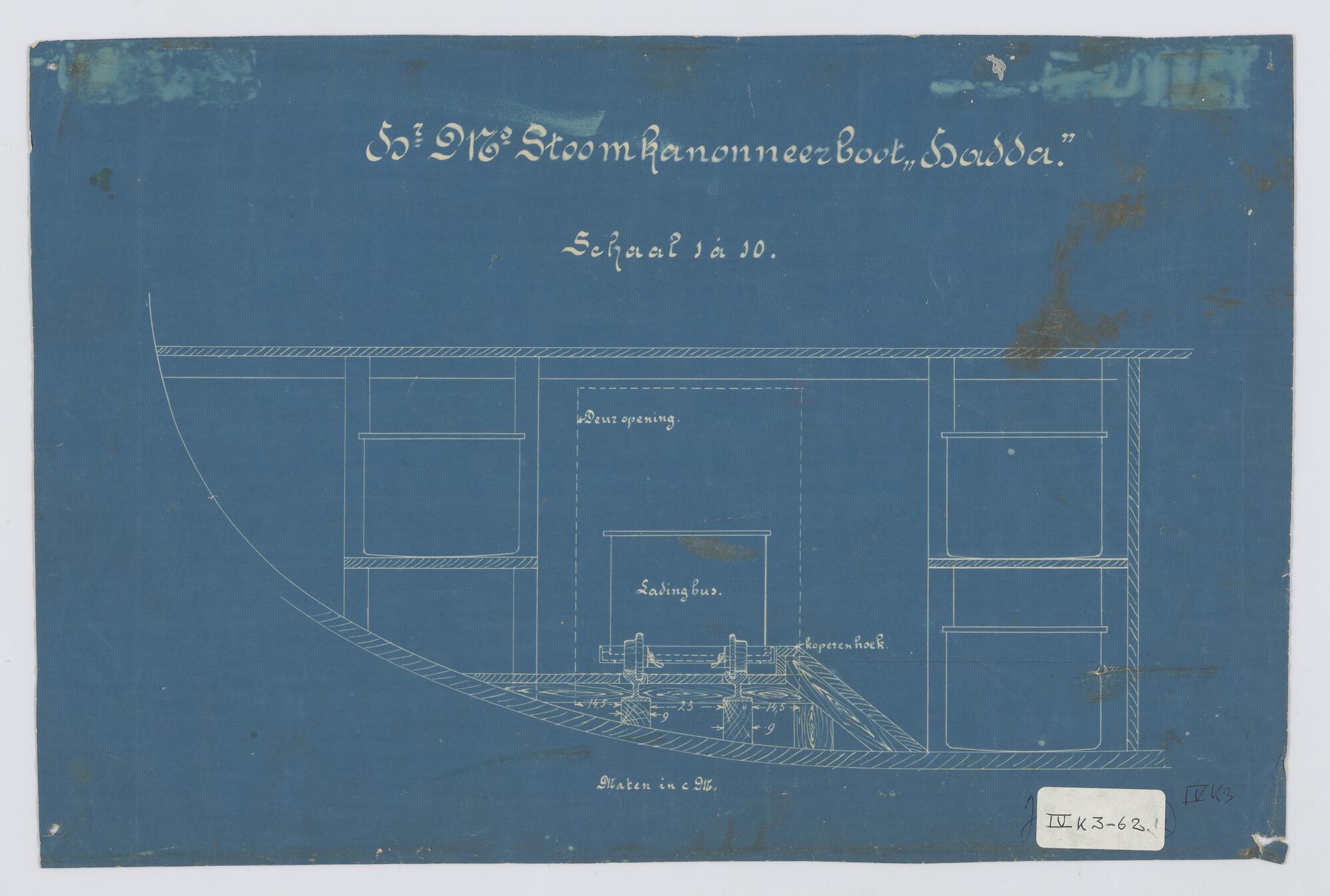 Zr.Ms. Hydrograaf, 1872. Tuigtekening en inwendige v...
