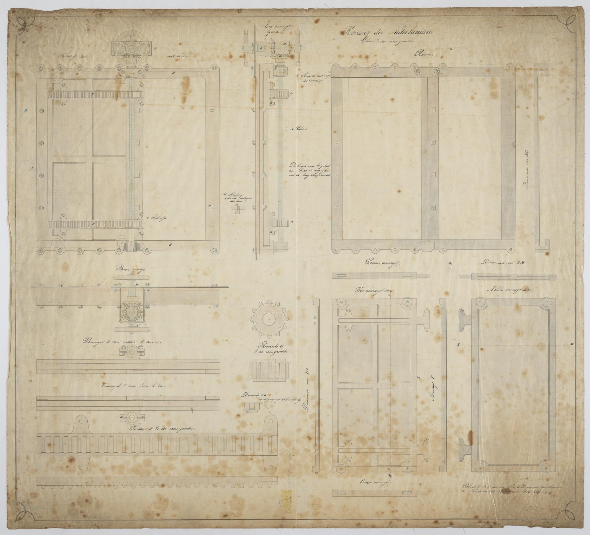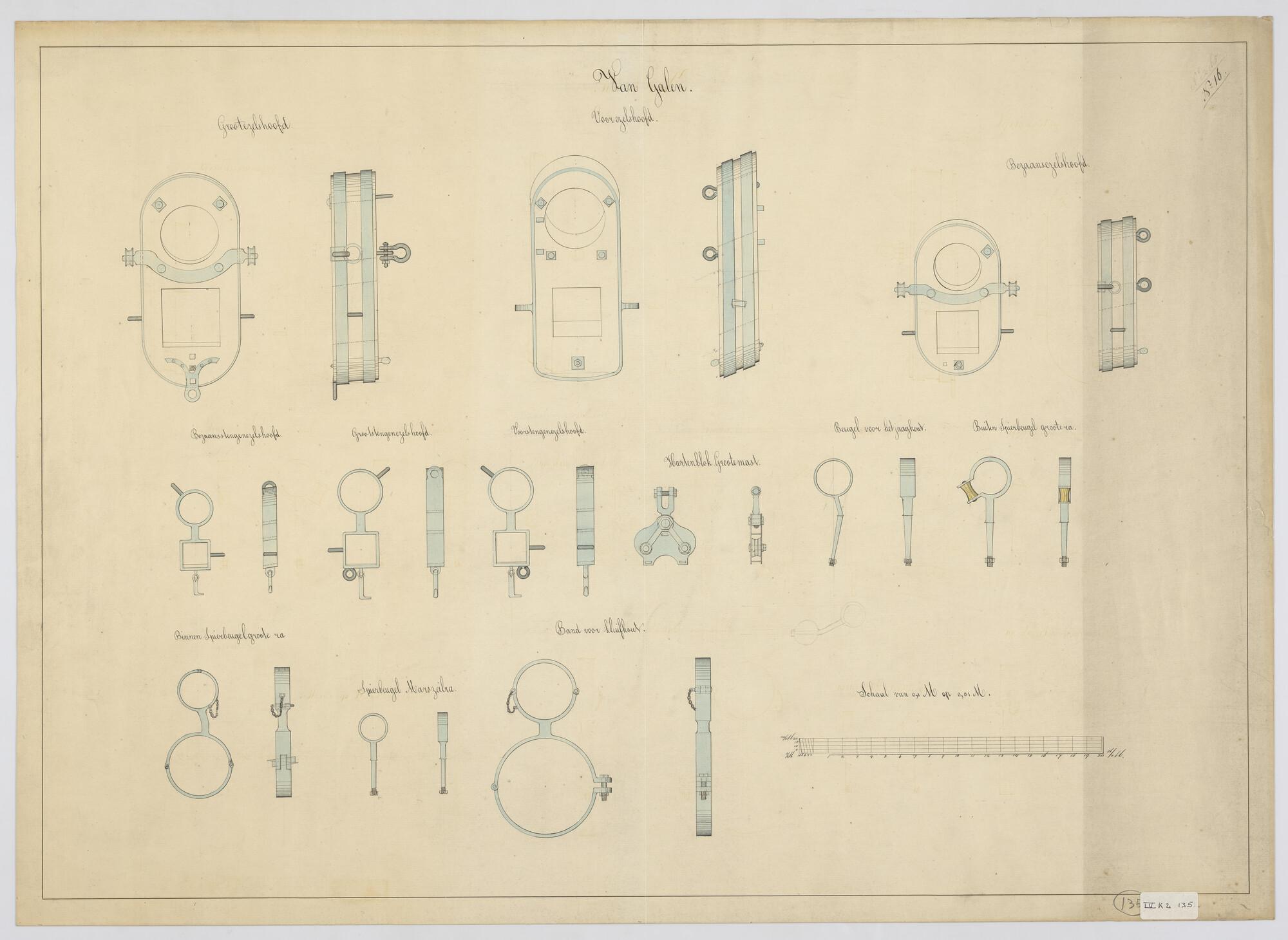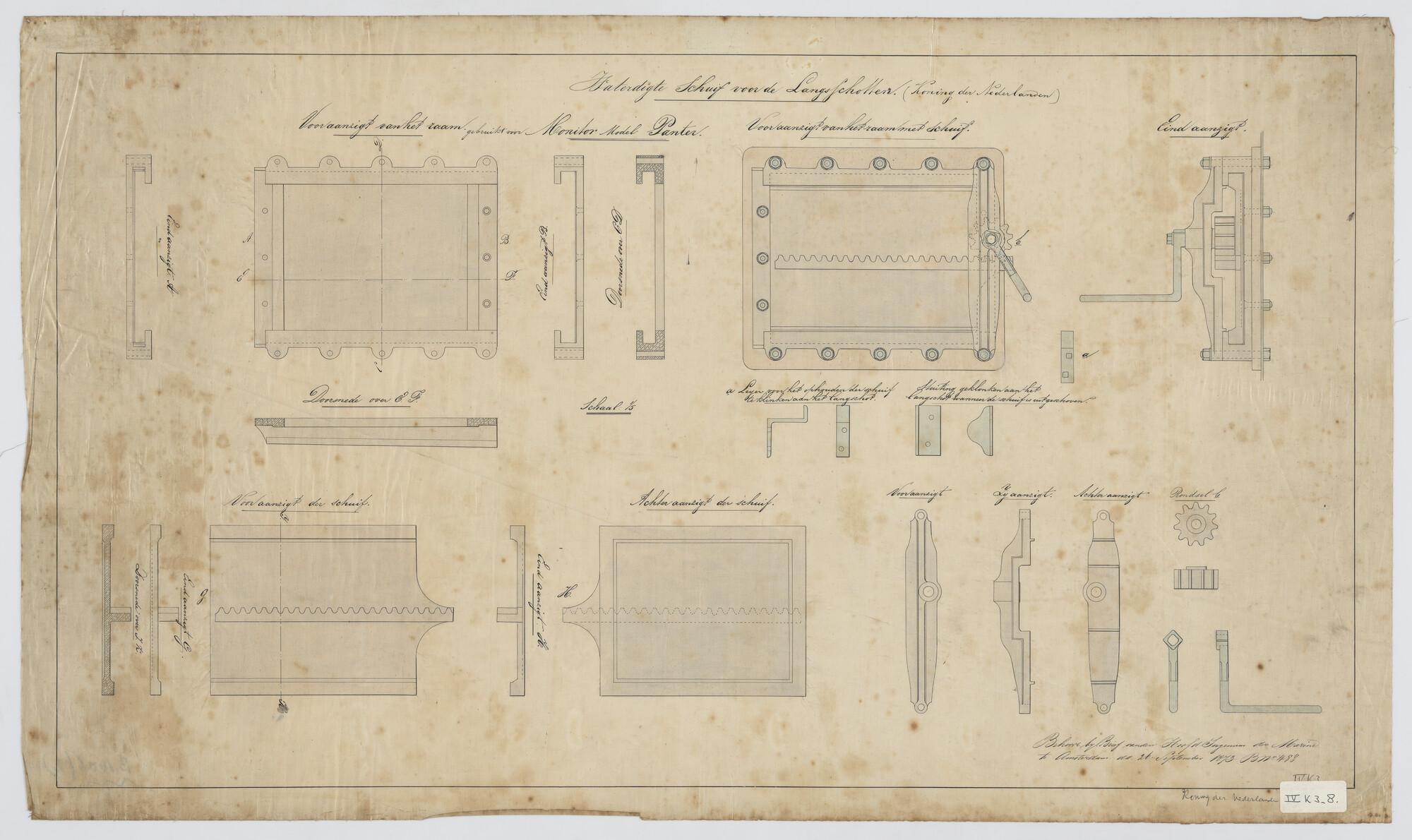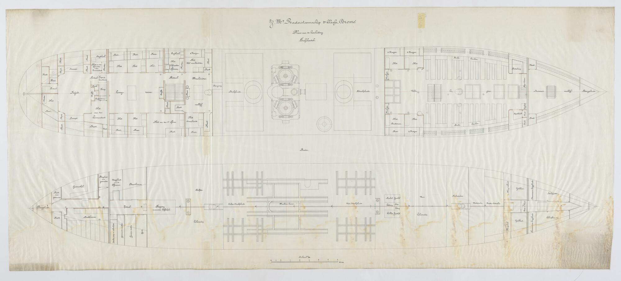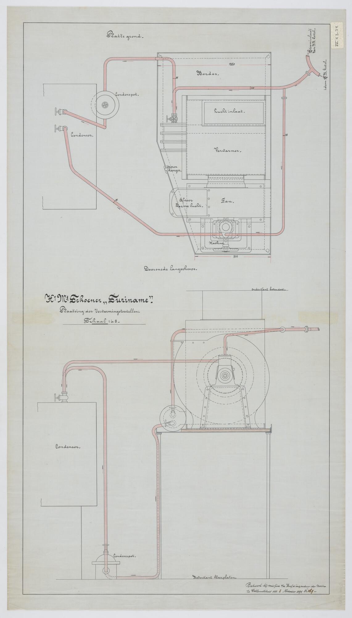 Zr.Ms. Hydrograaf, 1872. Tuigtekening en inwendige v...