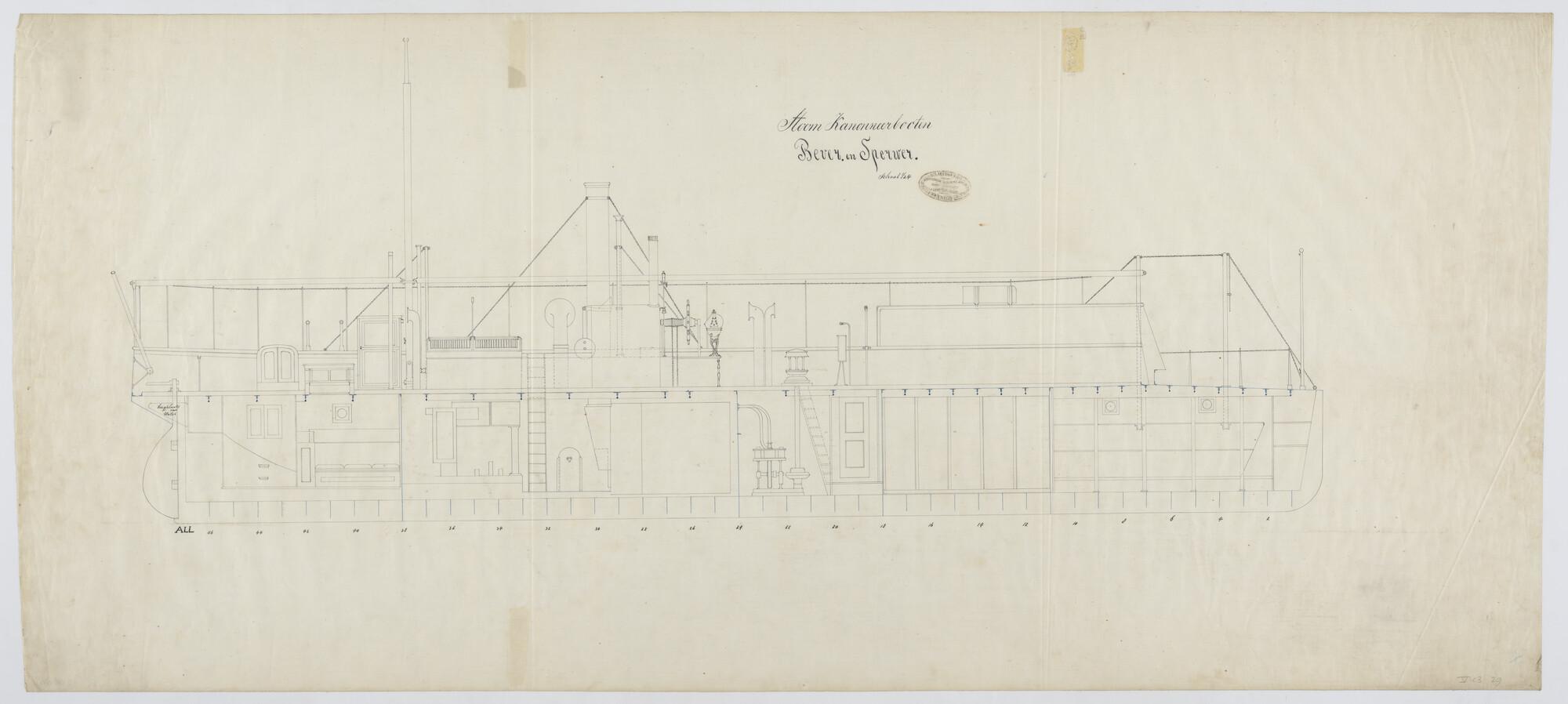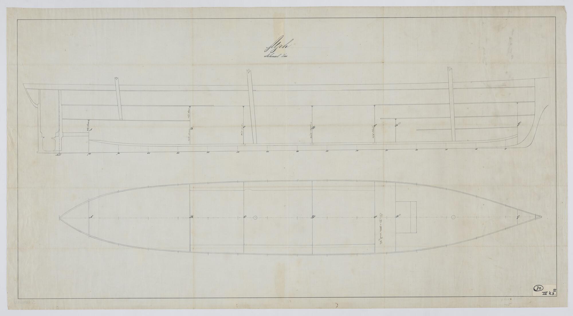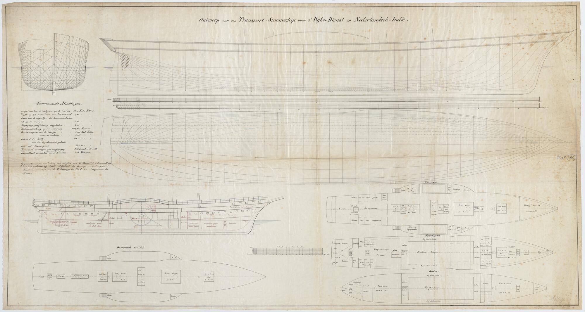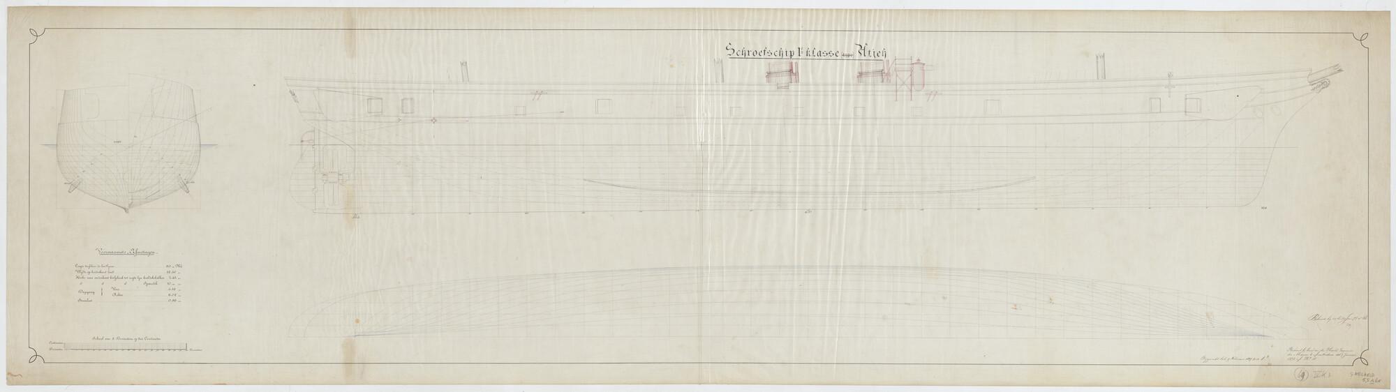 Zr.Ms. Hydrograaf, 1872. spantenraam, waterlijnen, v...