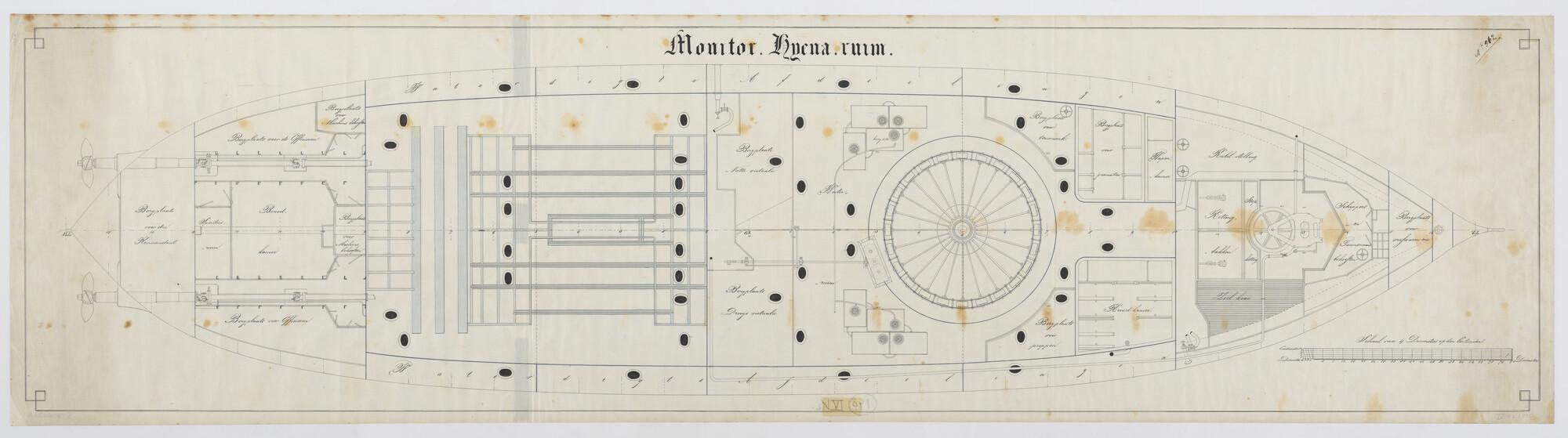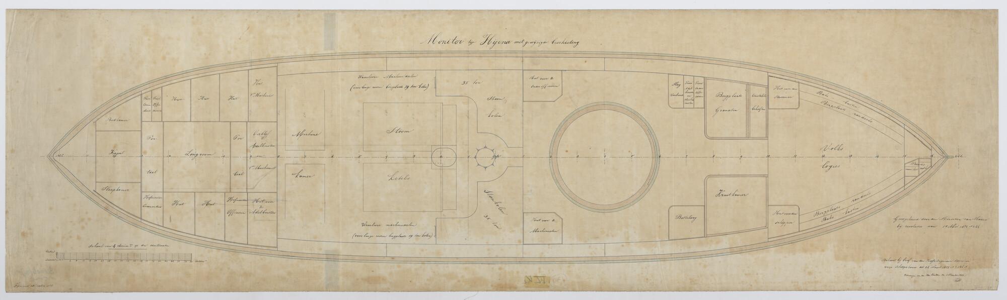De monitor Zr.Ms. 'Hyena', 1869. 56.70 x 13.40 x 3.2...