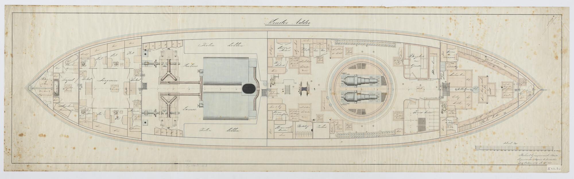 De brik Zr.Ms. 'Castor', 1878. Tussendek en ruim