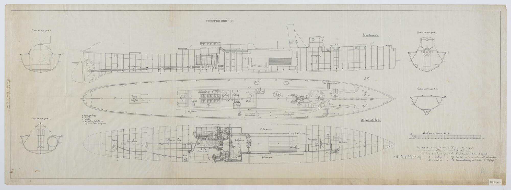 'Torpedoboot XII' 1878. Sparconstructie, spantenraam...
