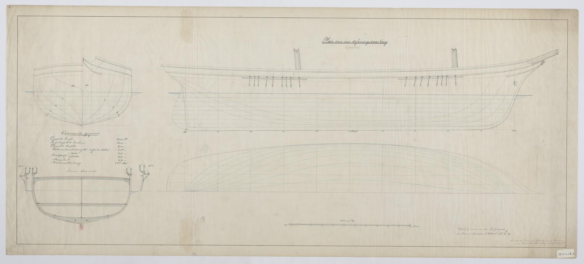 'Transportschip' 1841. zijaanzicht met tuigplan