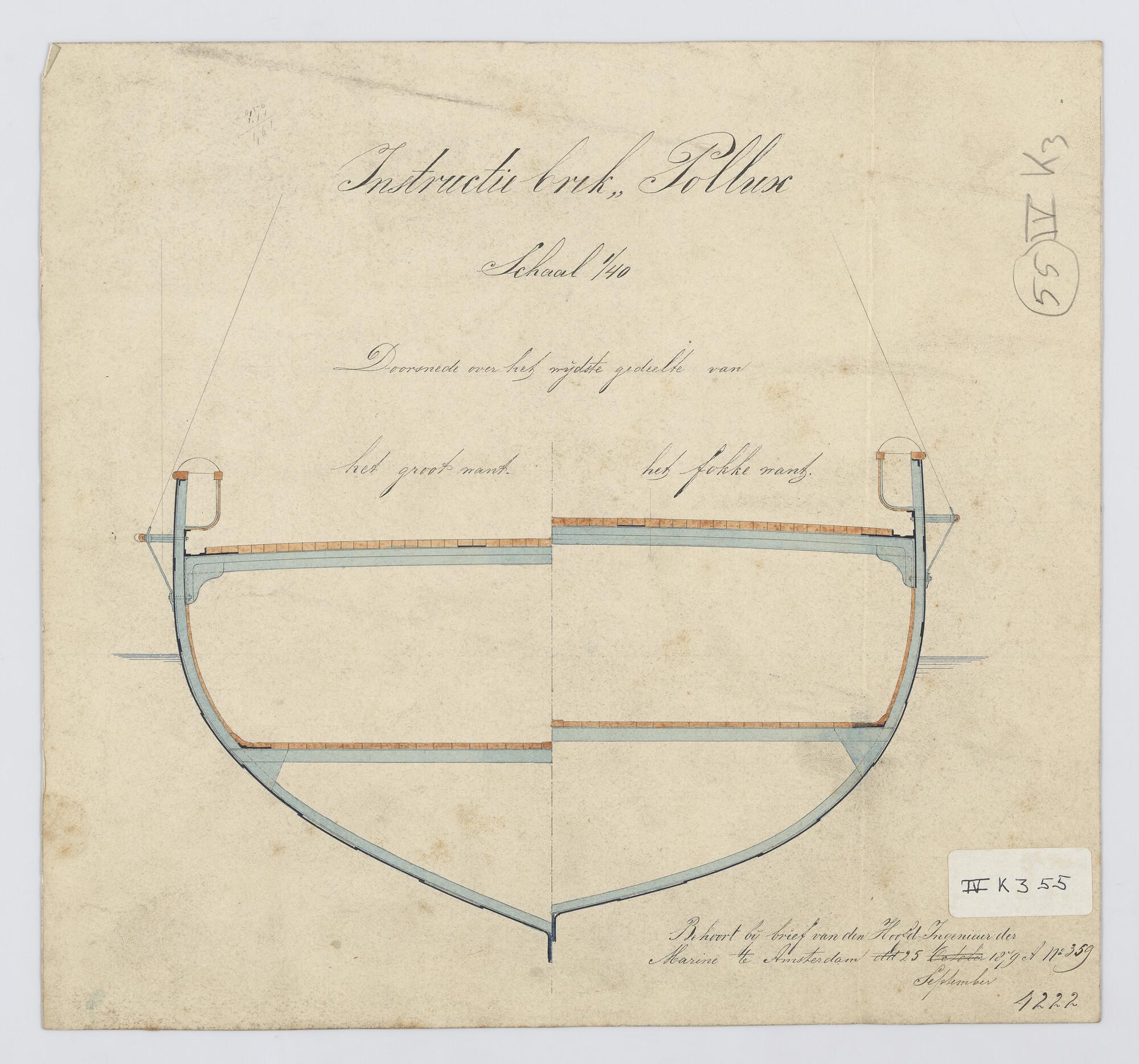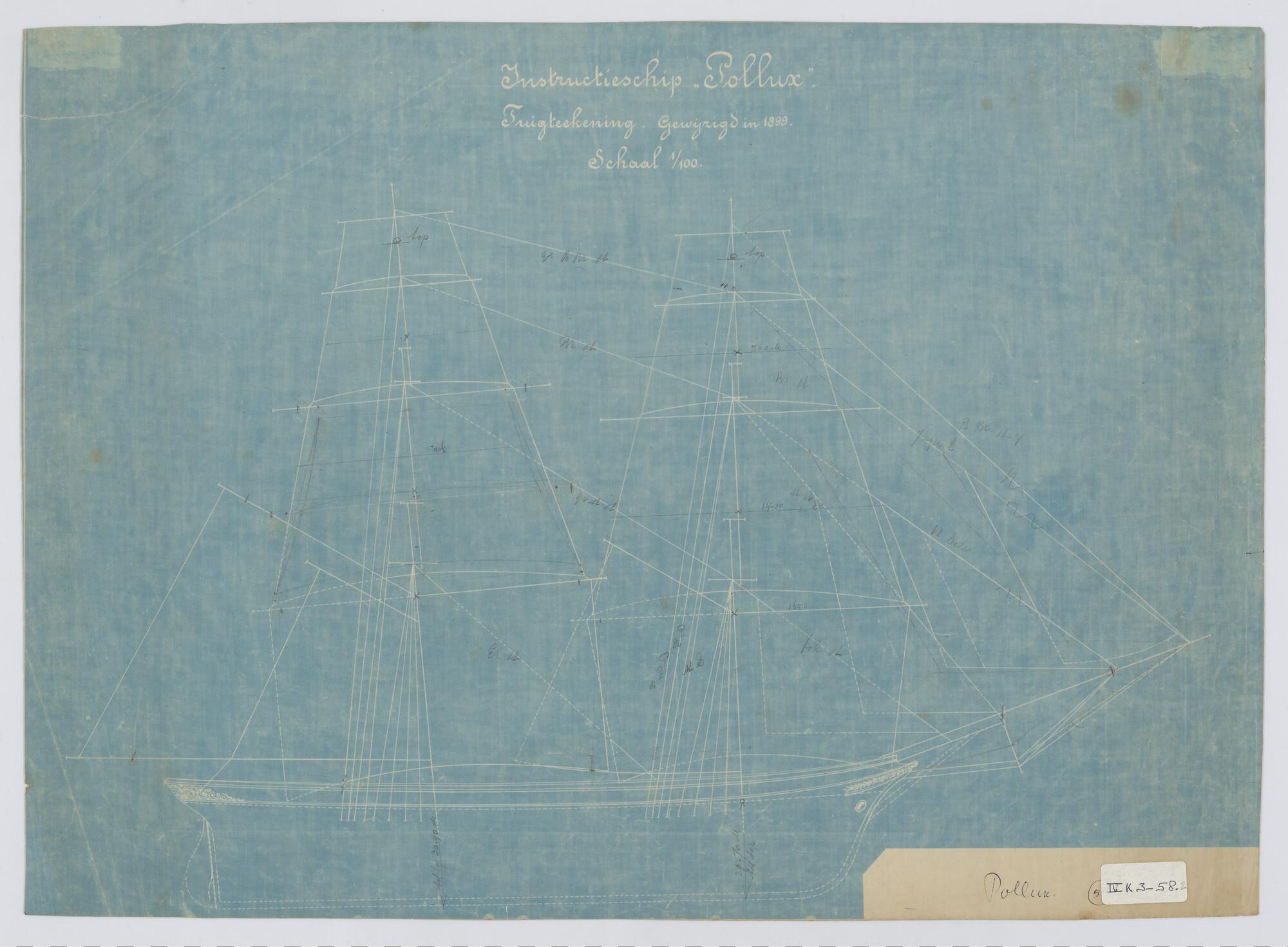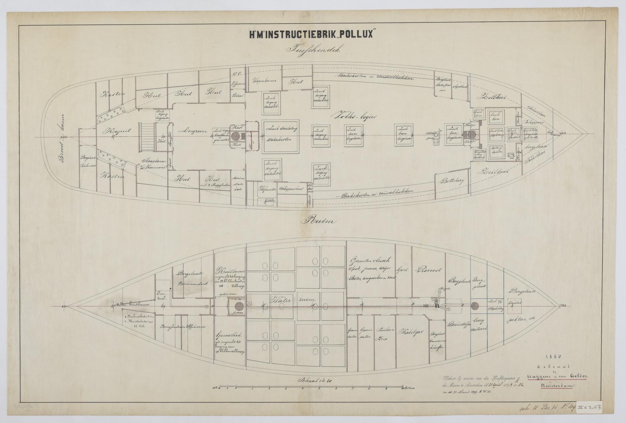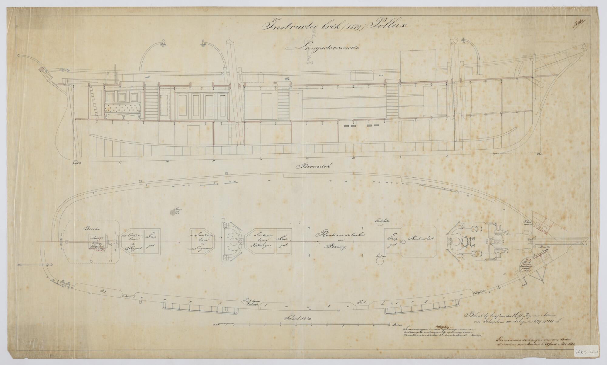 De oefenbrik Zr.Ms. 'Pollux', 1879. verticale langsd...