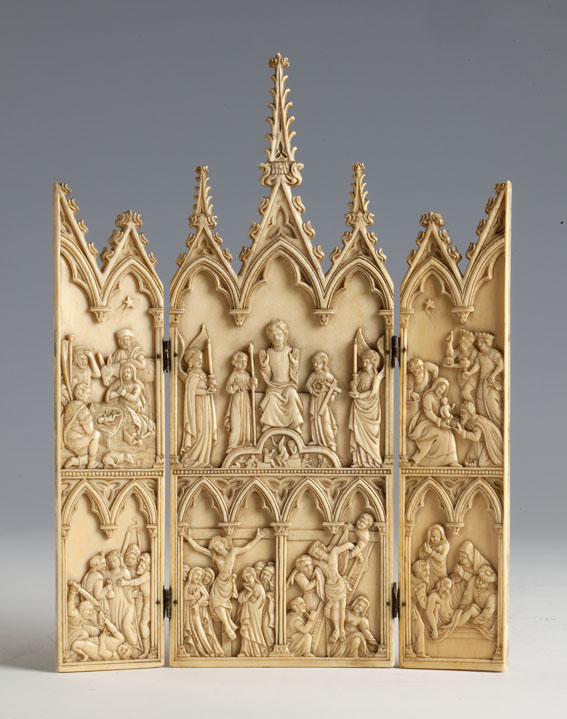 Tweeluik in Frans-gotische stijl met twaalf uitgesne...