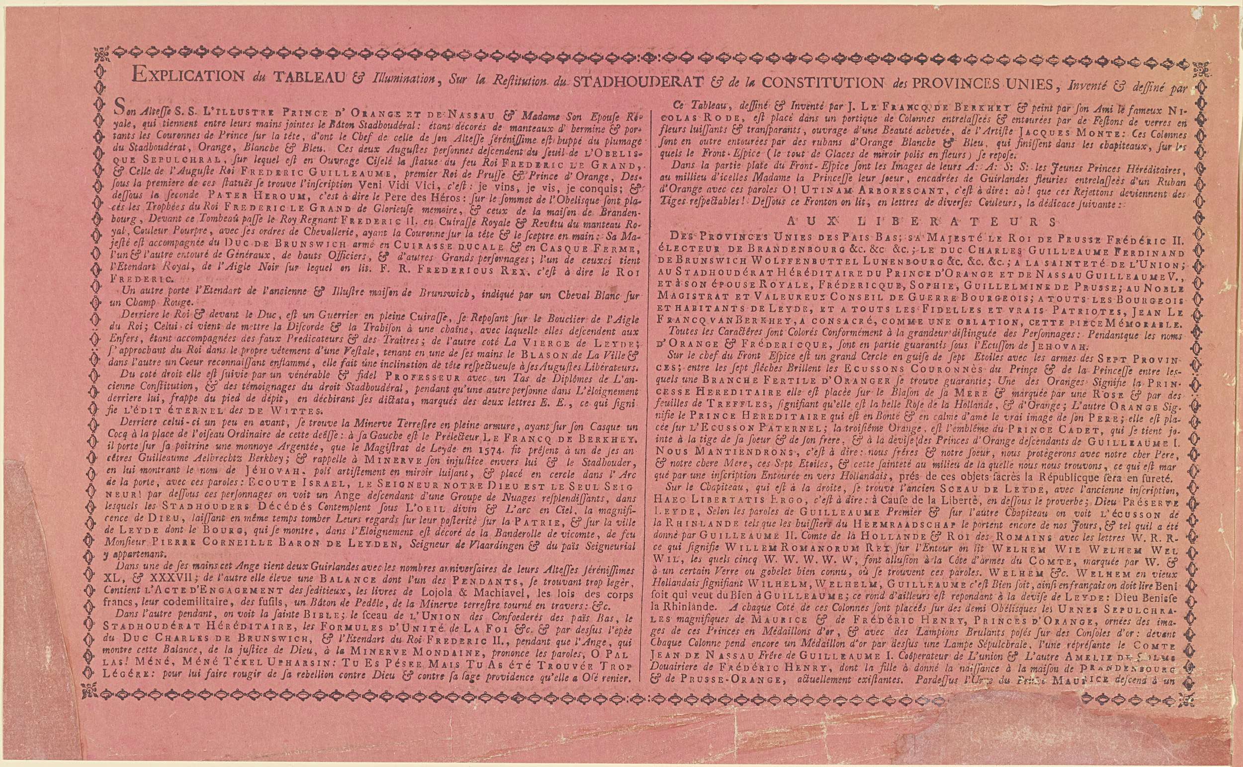 Verklaring bij de allegorie op het herstel van de st...