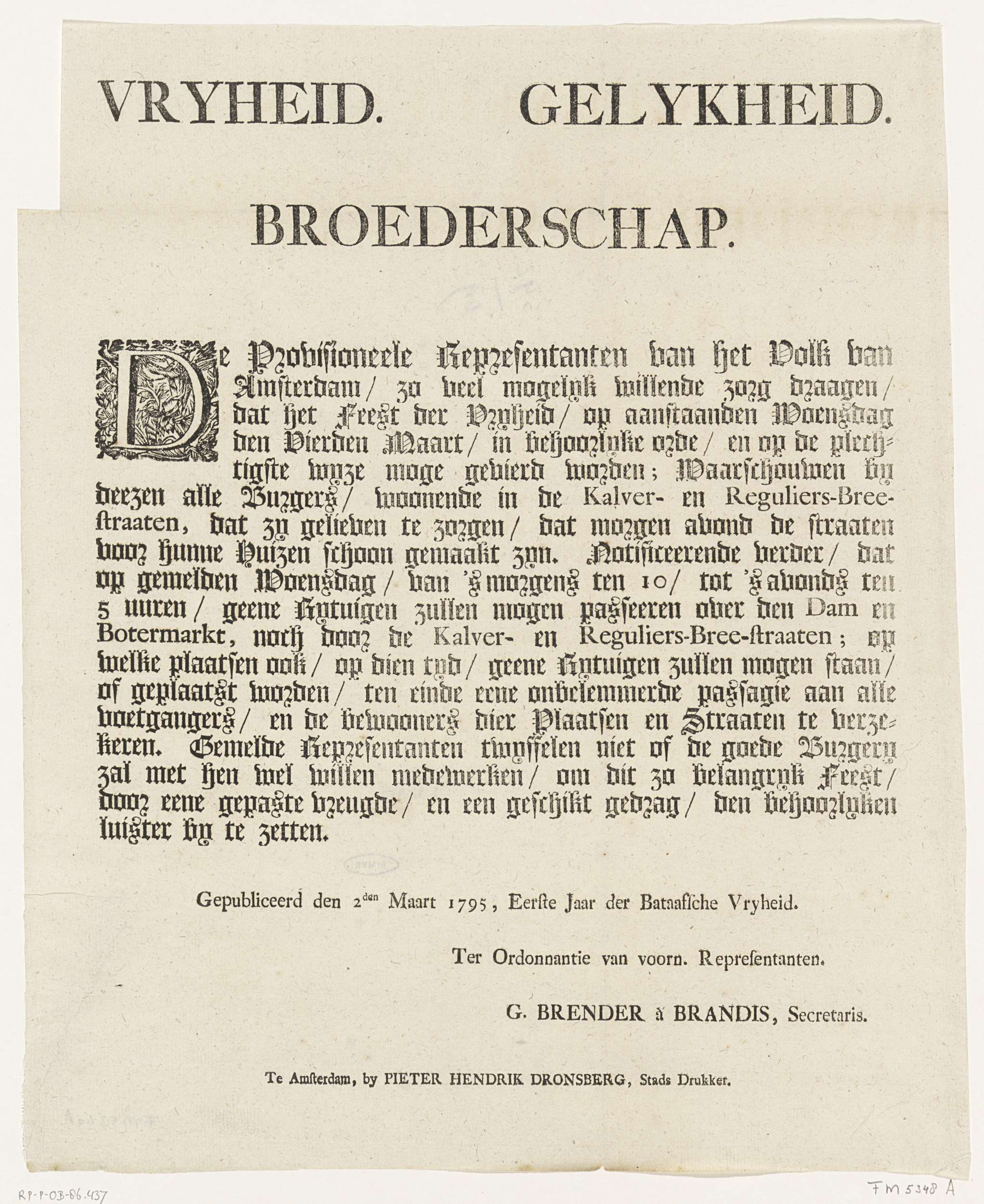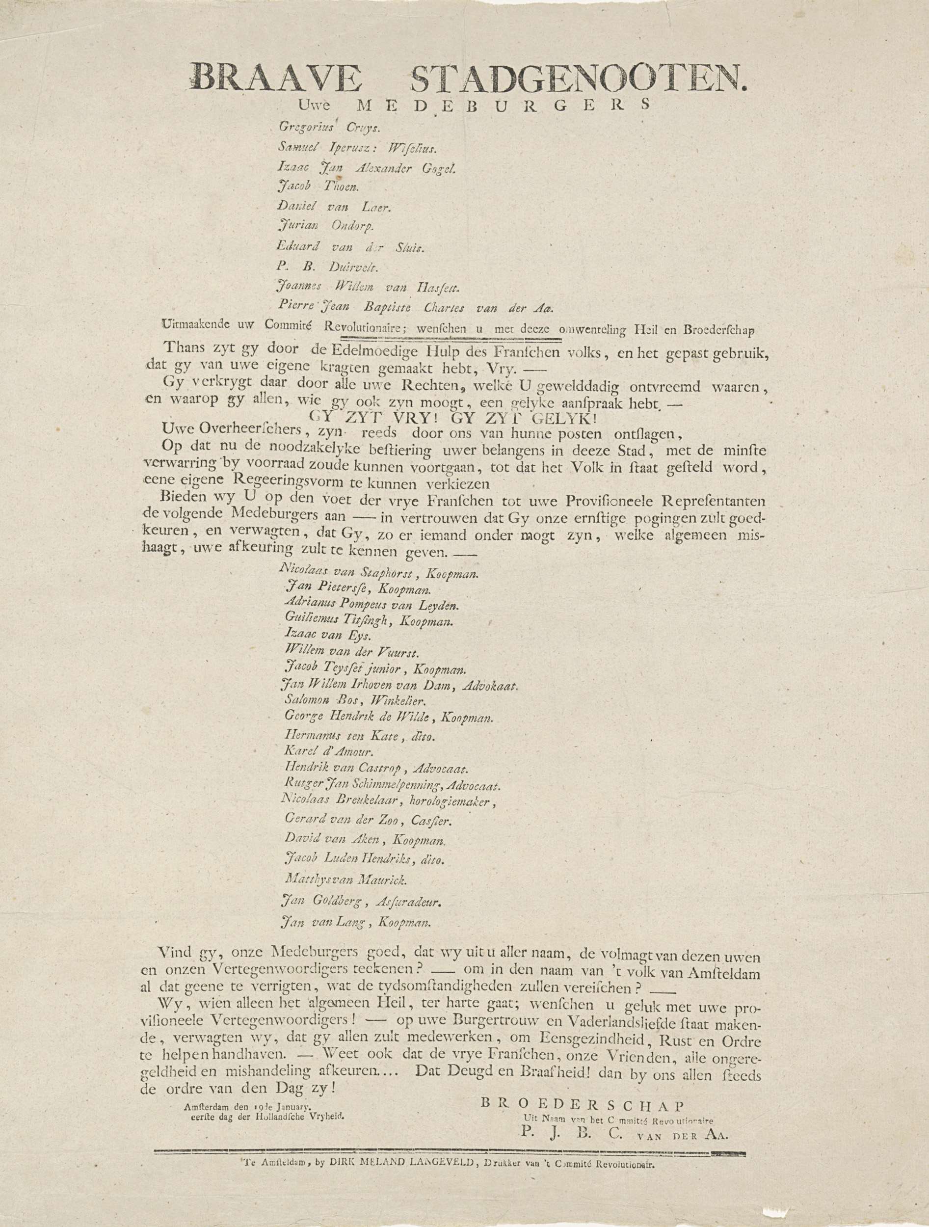 Proclamatie van Comité-Revolutionair te Amsterdam, 1795