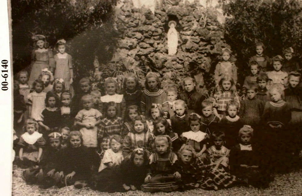 Kinderen bij de Lourdesgrot Paterstuin in Huissen ki...