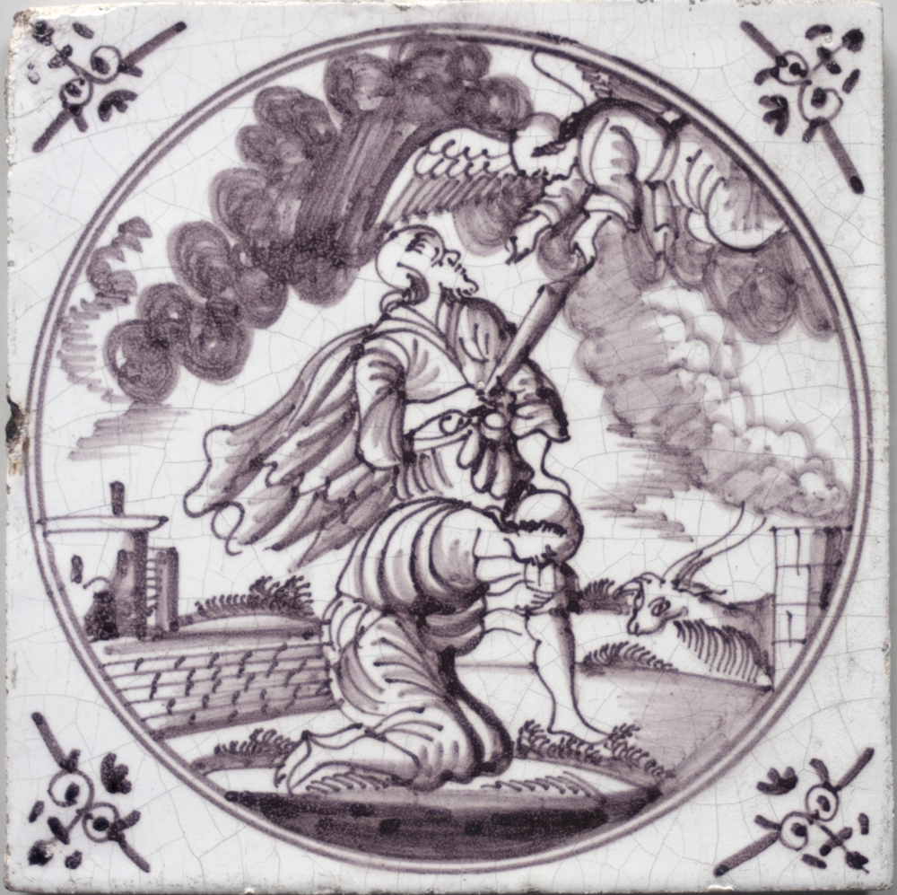 tegel van keramiek met tinglazuur, voorstellende: Ab...