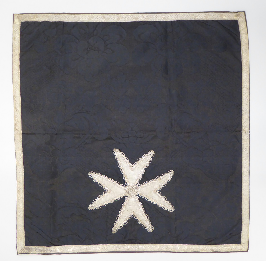 Blauwe rouwmanipel met kruisje van zwart-wit galon, ...