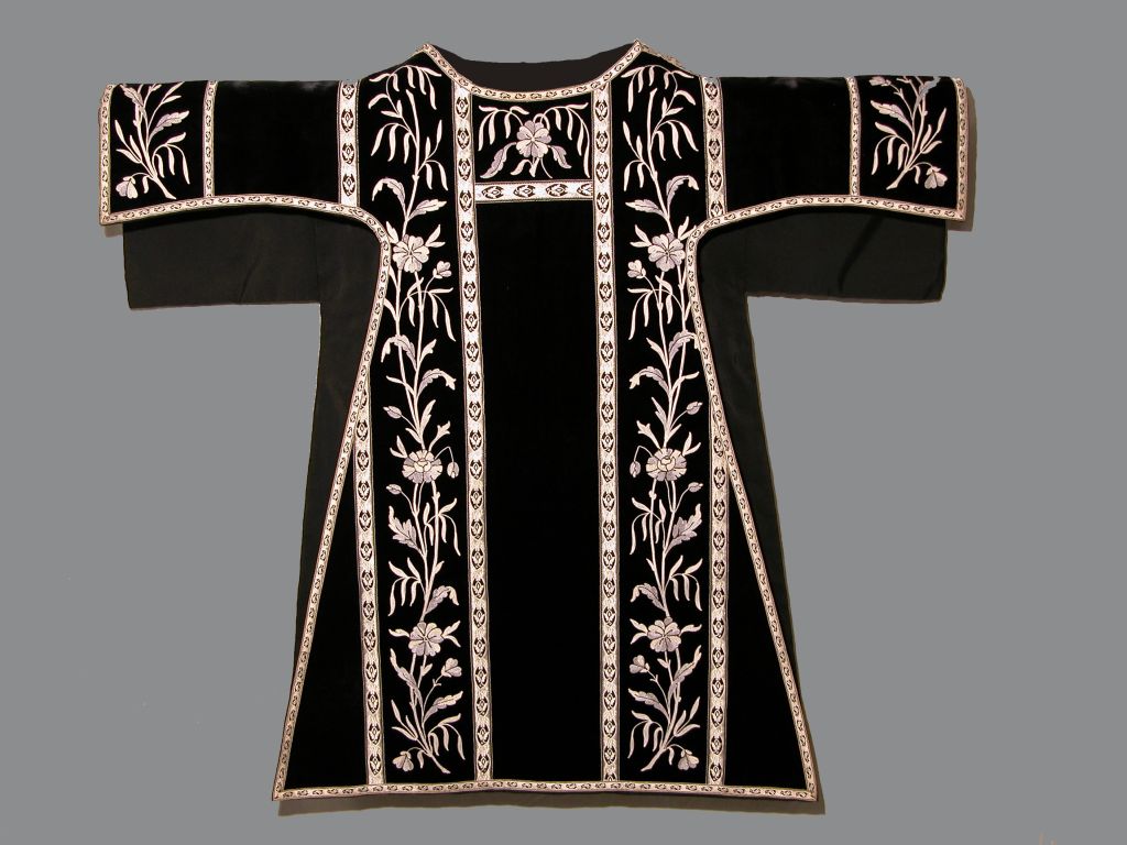 Zwart kazuifel met geappliceerde vierpas met schilde...