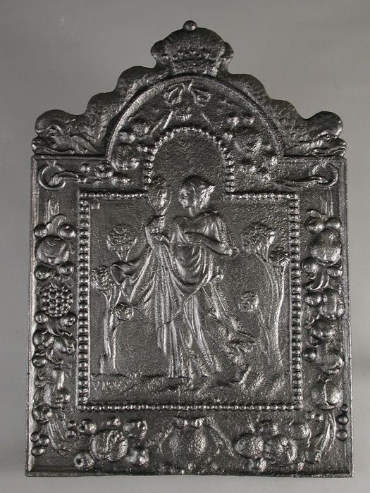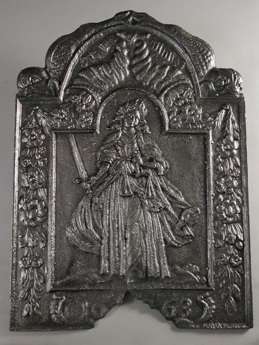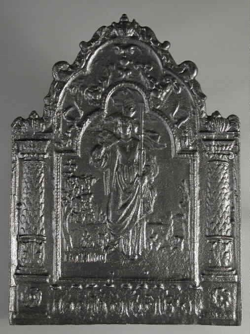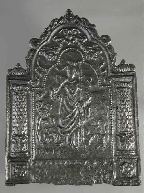 Haardplaat vrouwe Justitia, de Gerechtigheid, jaarta...