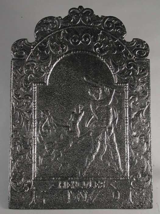 Gietijzeren haardplaat, Hercules met Cerberus, "HERC...