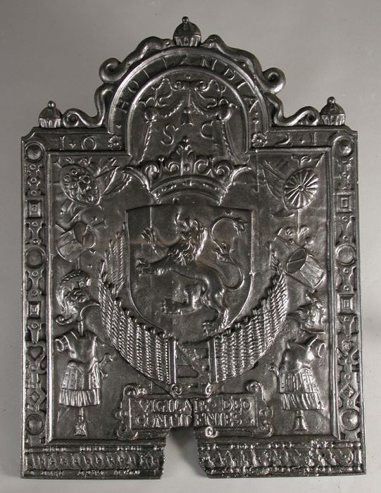 Haardplaat Hollandse leeuw, jaartal "1621", "Holland...