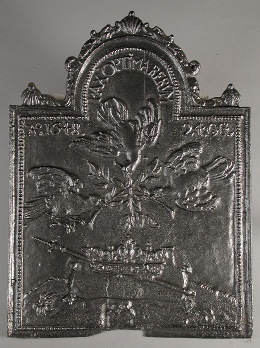 Haardplaat op het Verdrag van Münster, met "1648", "...