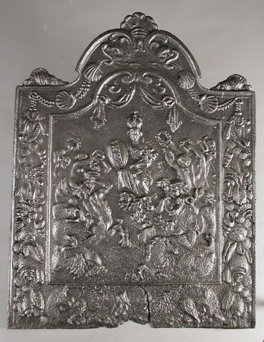 Haardplaat met vleugels, hangers en kroon, zonder vo...