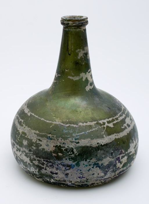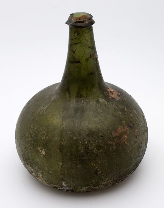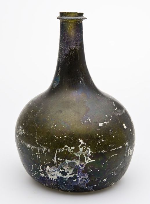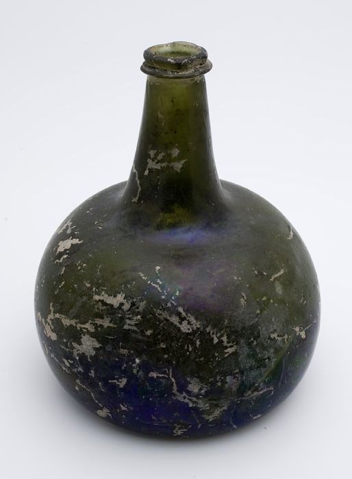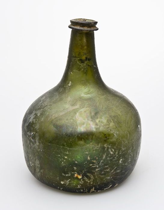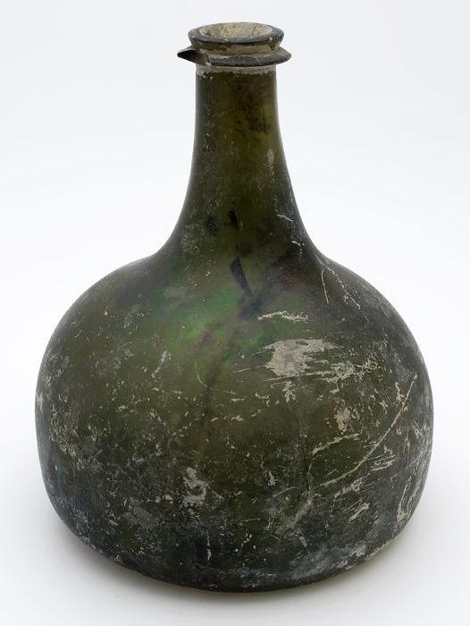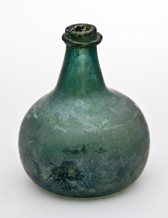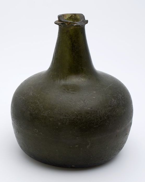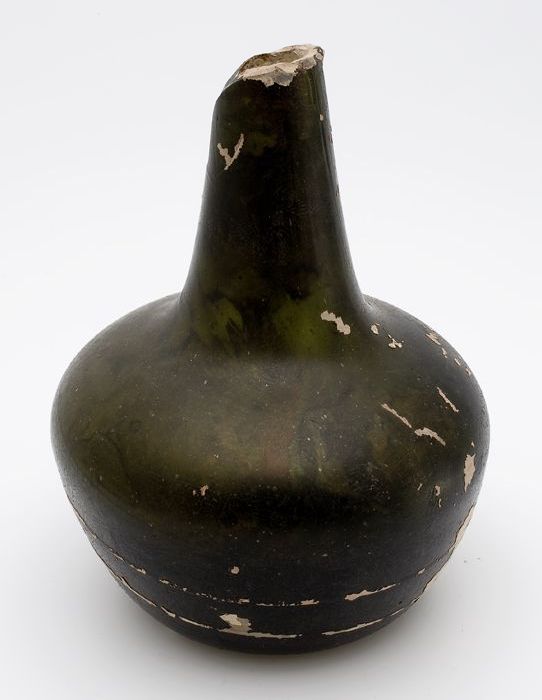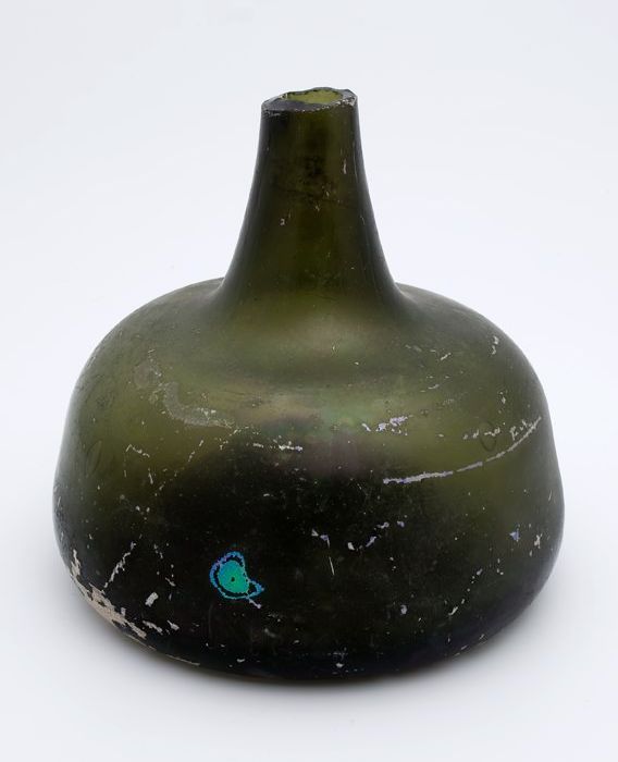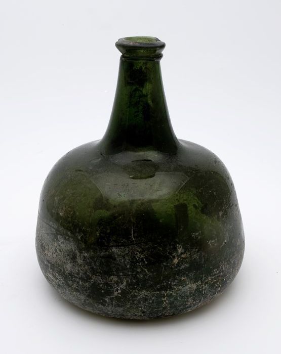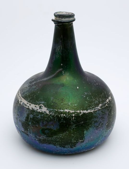 Rondbuikige fles, shaft and globe met glaszegel