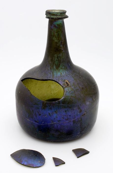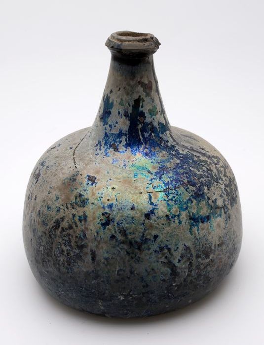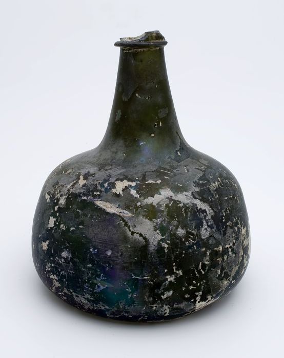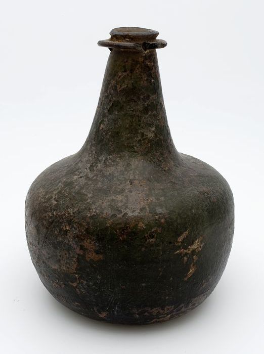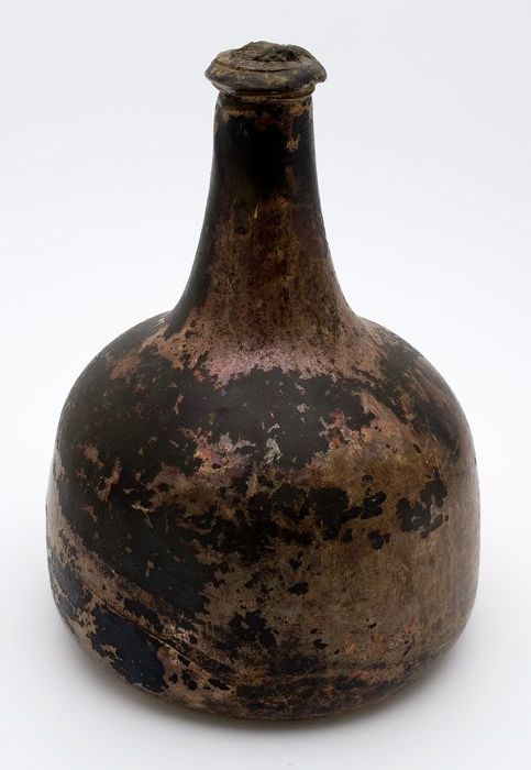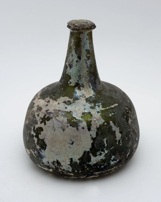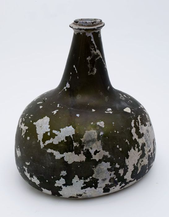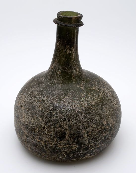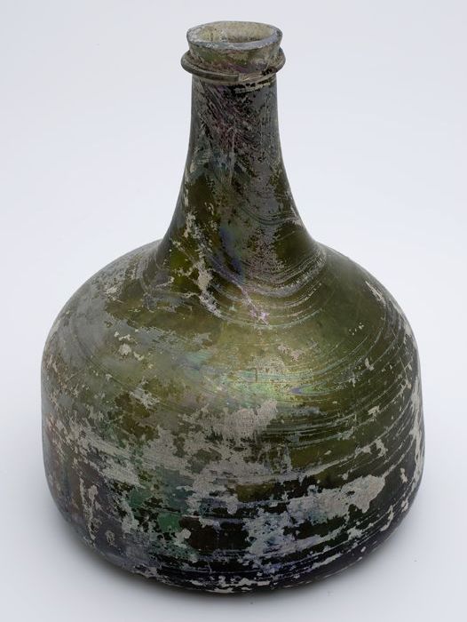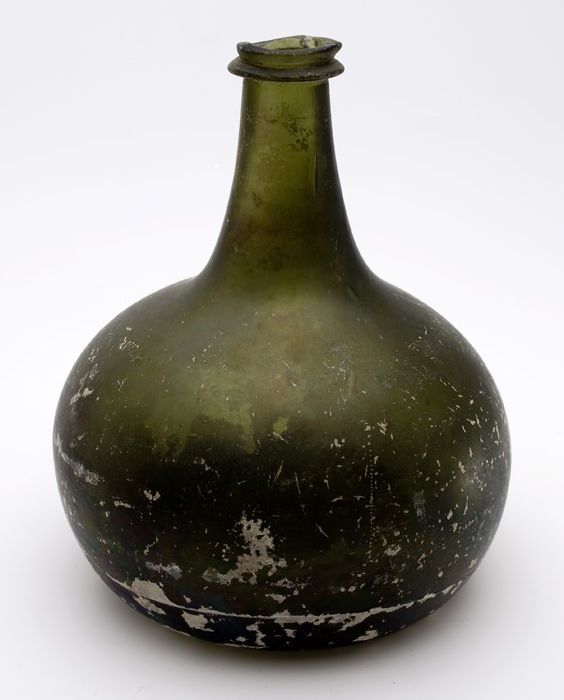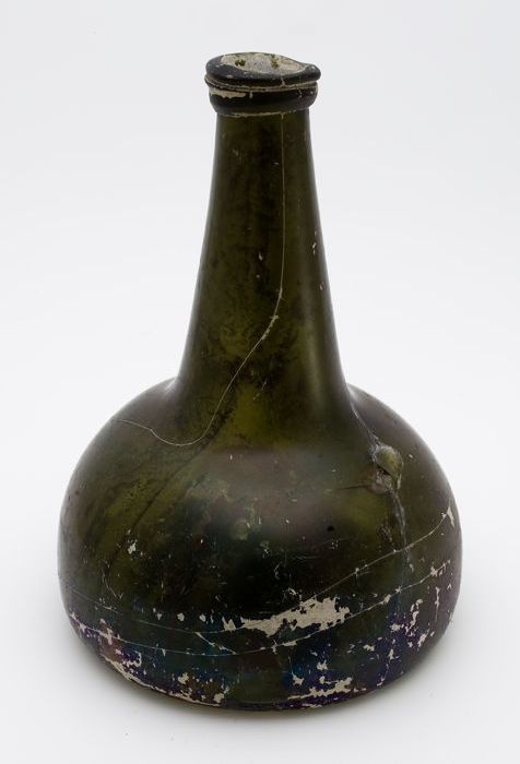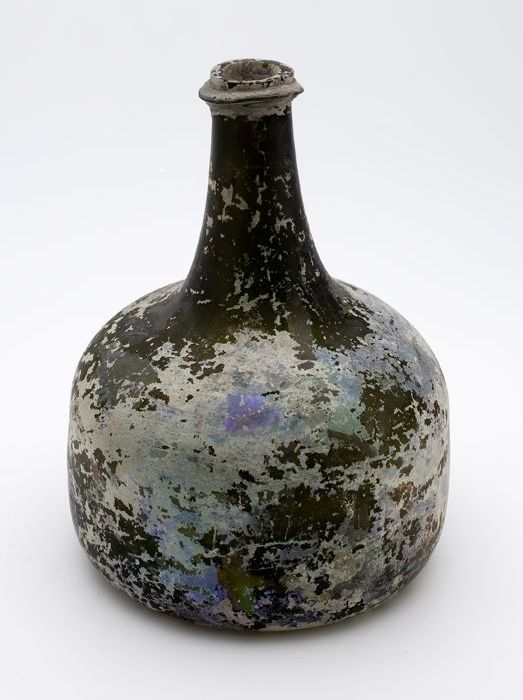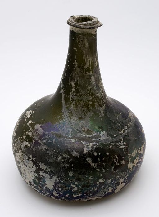 Rondbuikige fles, shaft and globe met glaszegel