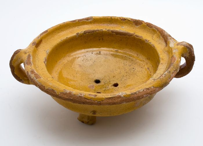 Aardewerk aardbeienpot, vijzel model met bandoor en ...