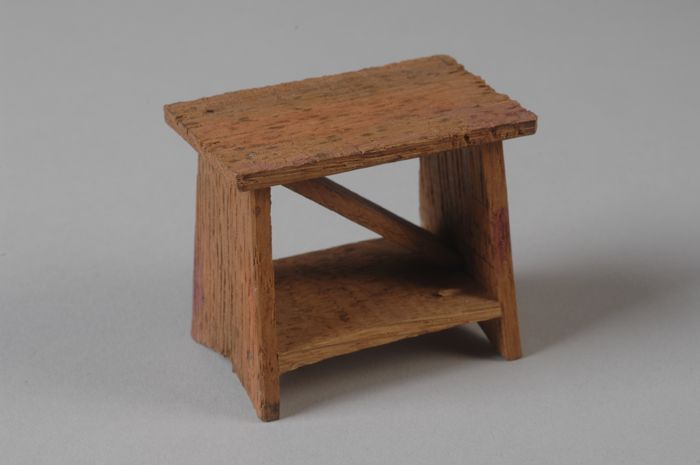 Eikenhouten (zaag-?) bankje, miniatuur