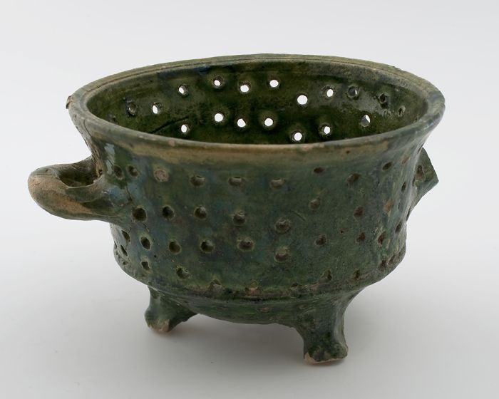 Klein aardewerk vergiet, witte scherf met groen lood...
