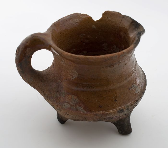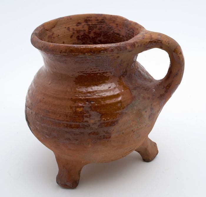 Aardewerk melkpot, rode scherf, geglazuurd, bandoor,...
