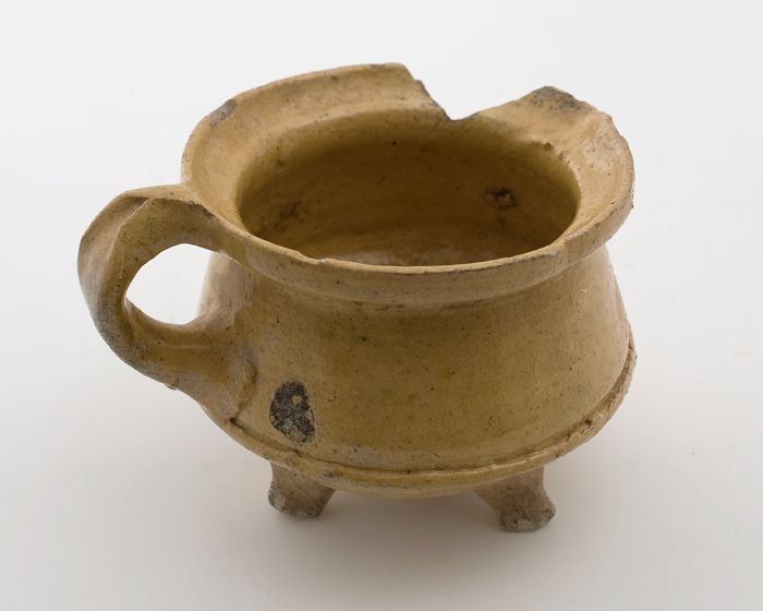 Aardewerk speelgoed kookkan, witte scherf, geel lood...