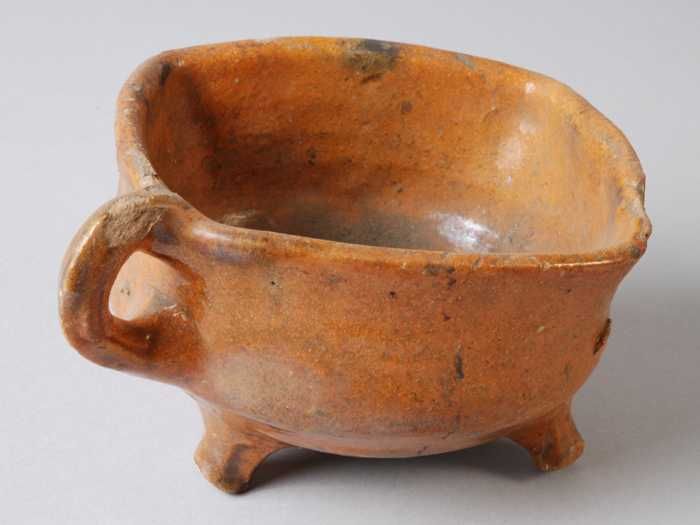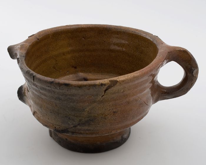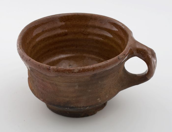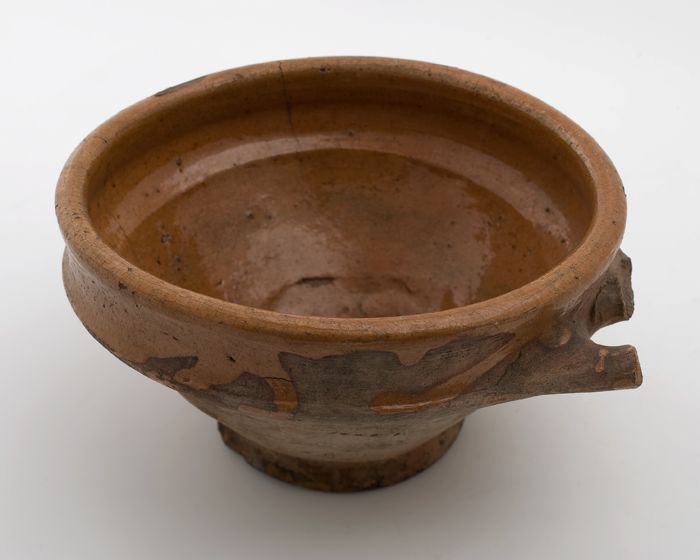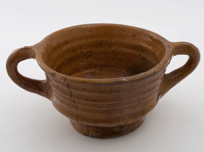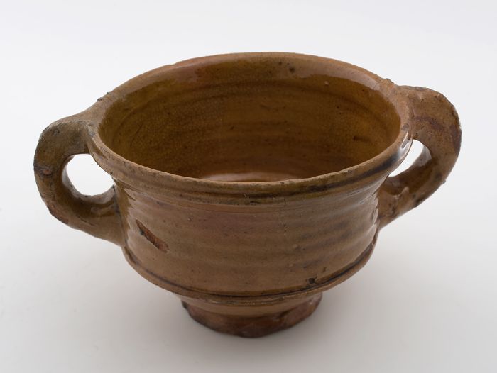 Aardewerk papkom, rode scherf, geheel geglazuurd, tw...