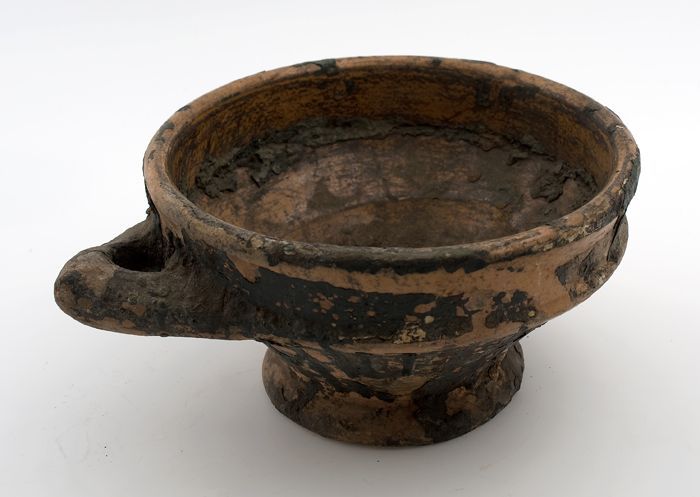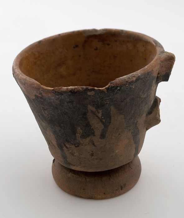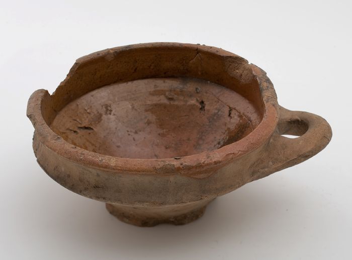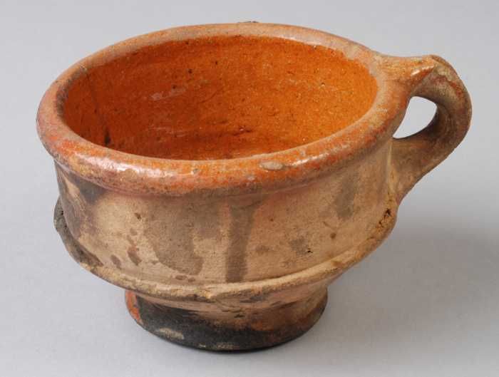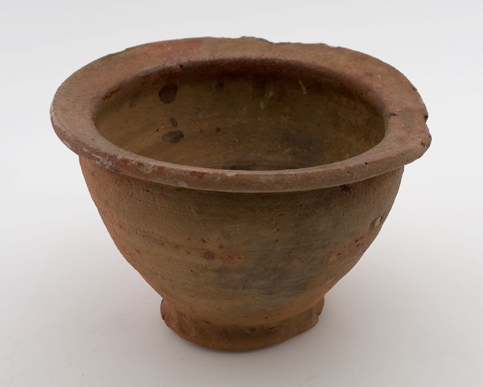 Hoge aardewerk kom, beker, rode scherf, mondrand bed...