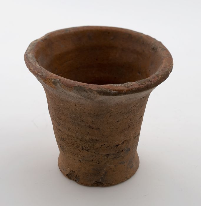 Aardewerk pot, beker model, rode scherf, inwendig ge...