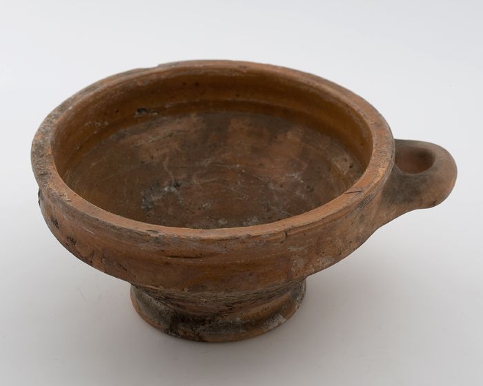 Aardewerk bak, rode scherf, ongeglazuurd, op standvlak