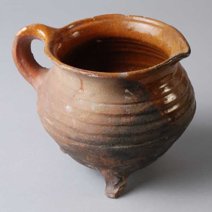 Aardewerk melkpot, geglazuurd in licht en donker bru...
