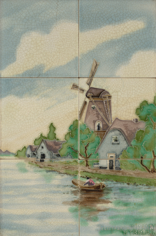 tegel van keramiek met tinglazuur, voorstellende: la...