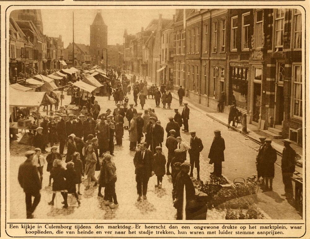 Foto, voorstellende een marktdag in de jaren te Cule...