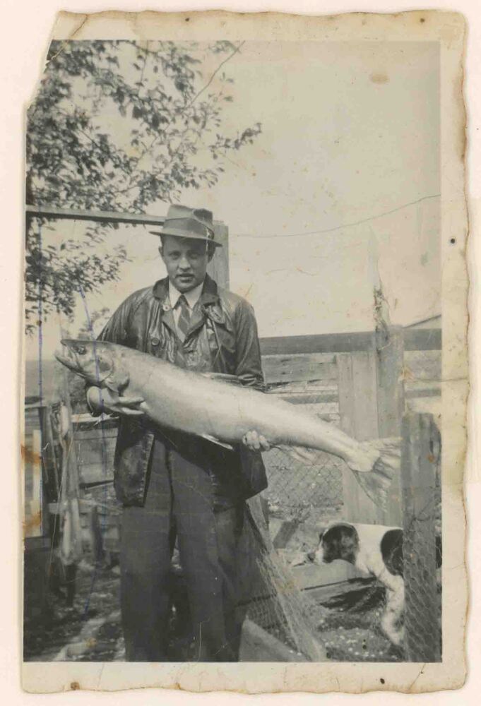 Foto, voorstellende C.W. Dresselhuijs met zalm, circ...