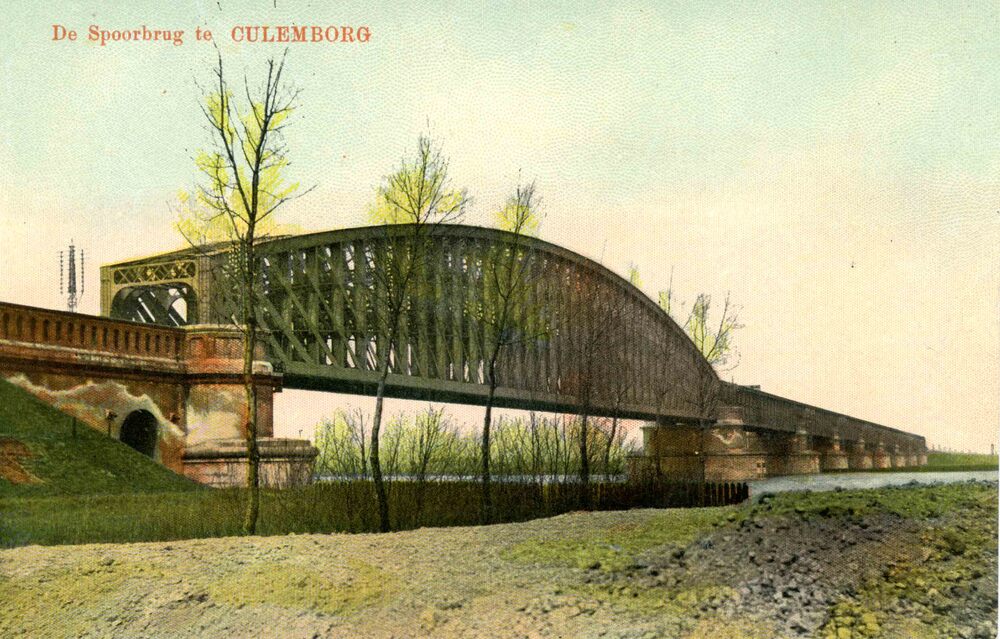 Ansichtkaart, voorstellende de spoorbrug te Culembor...
