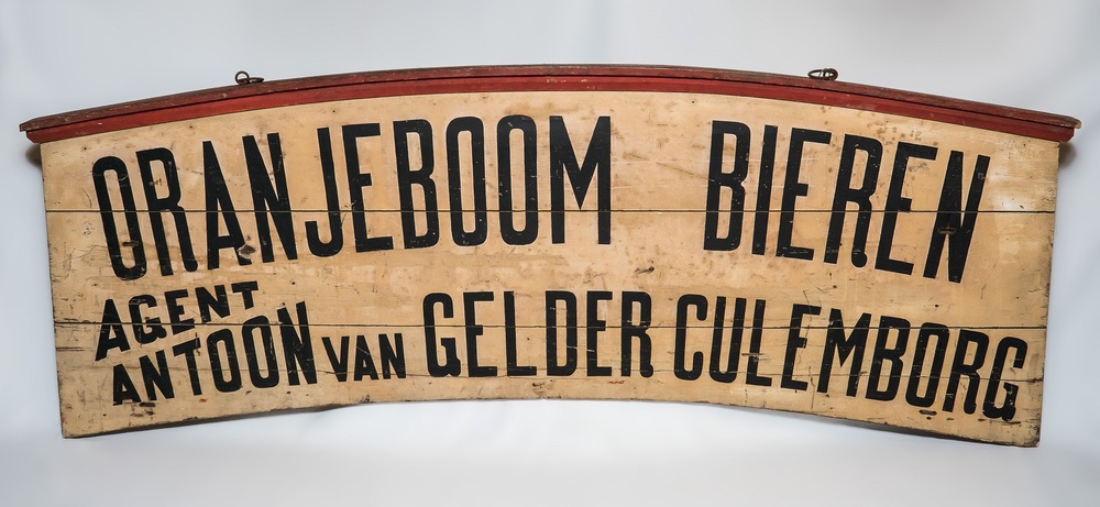 bord van hout voorstellende reclame voor bier, geass...