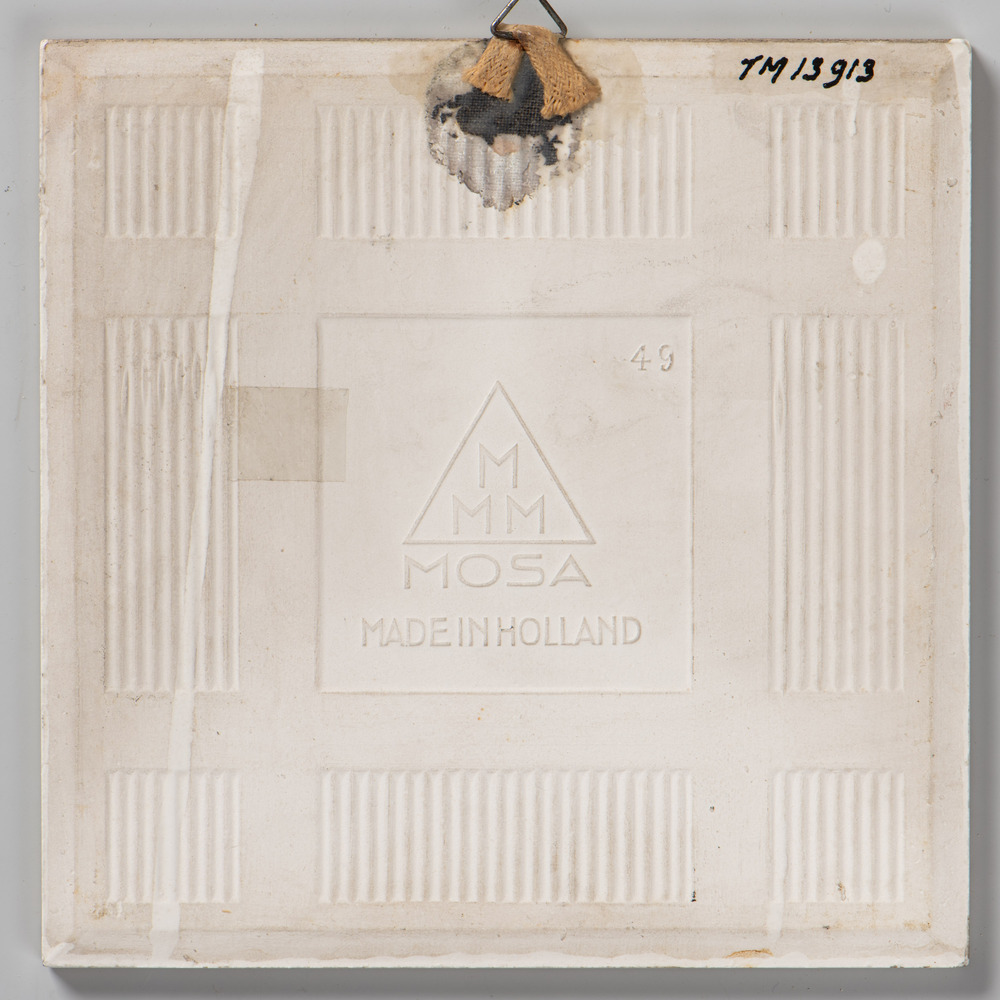 tegel van aardewerk met tinglazuur, voorstellende: m...