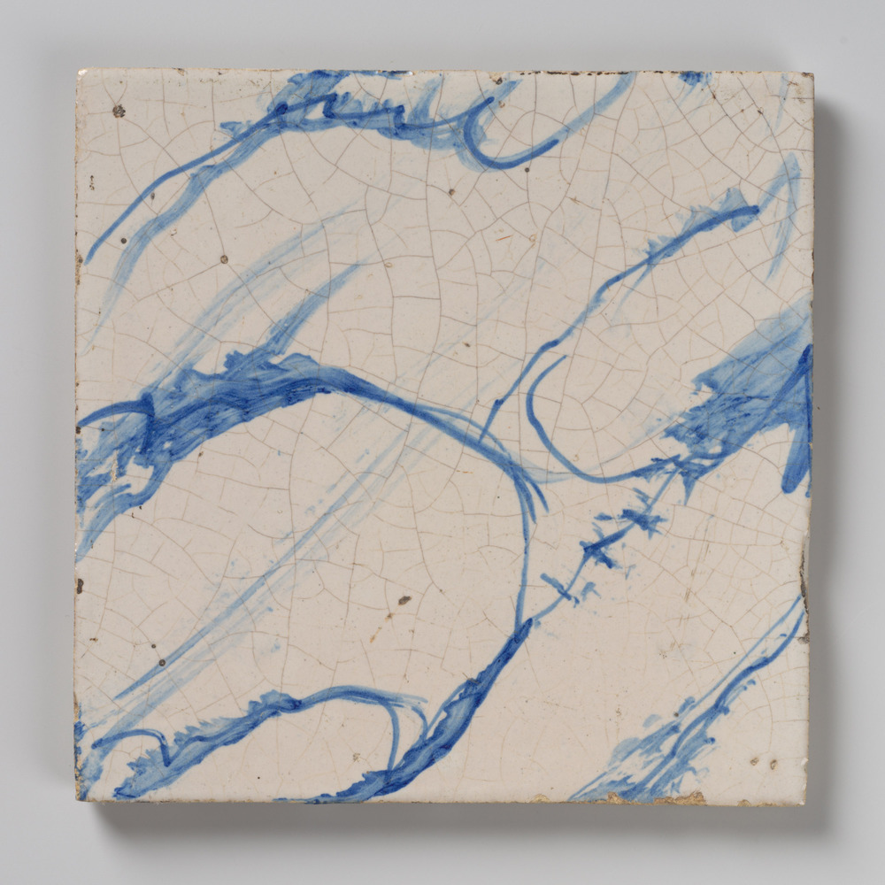 tegel van keramiek met tinglazuur, voorstellende: ze...