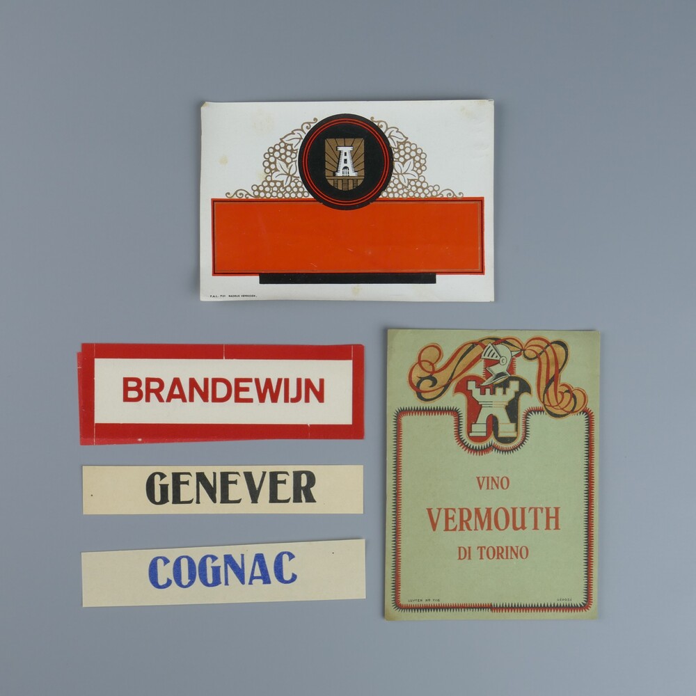 Flesje van glas vierkant met etiket van papier met a...