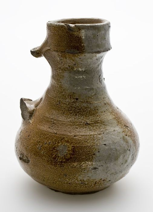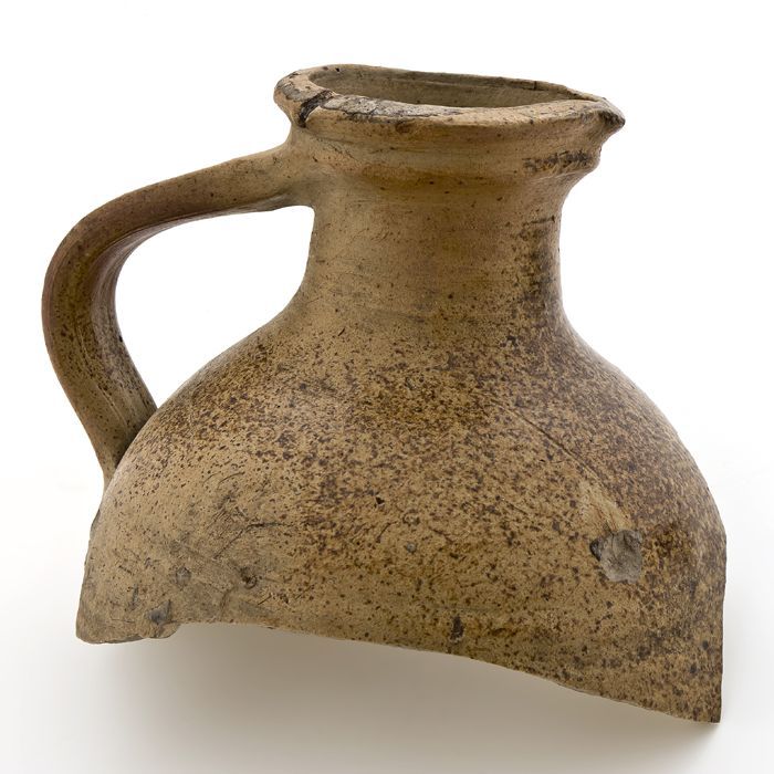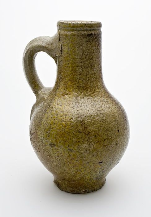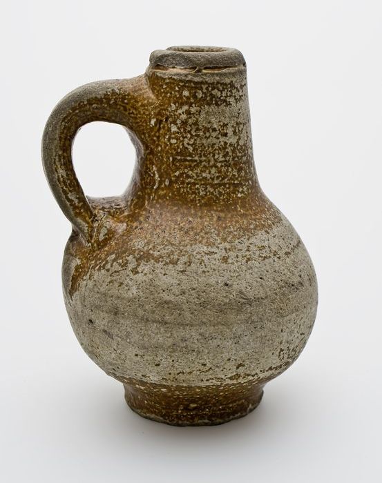 Kleine steengoed kruik met oor, lage buik en lange, ...