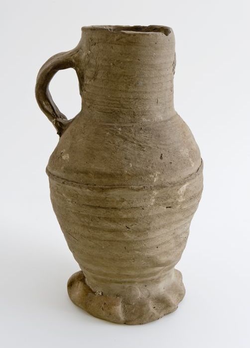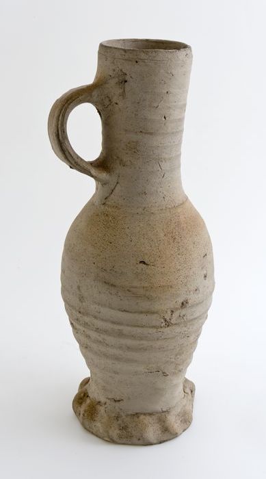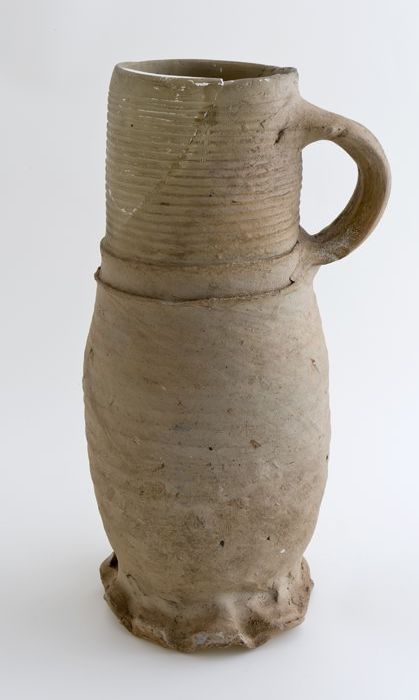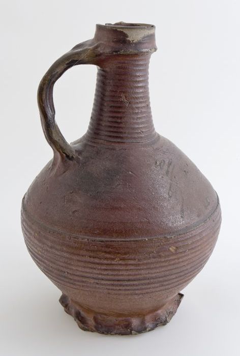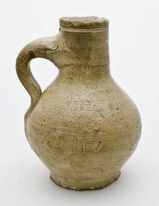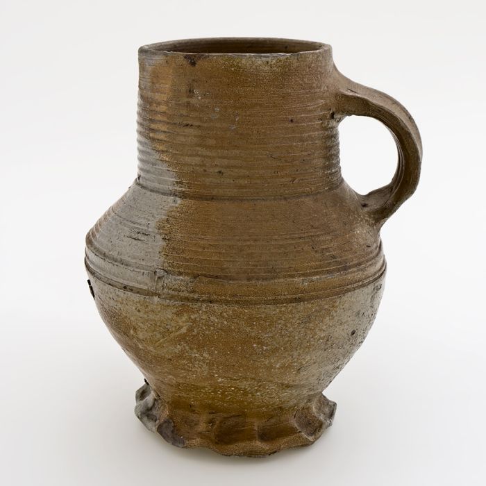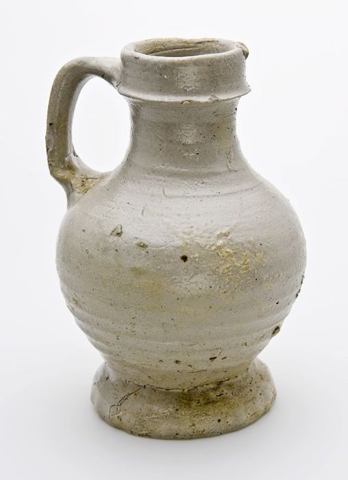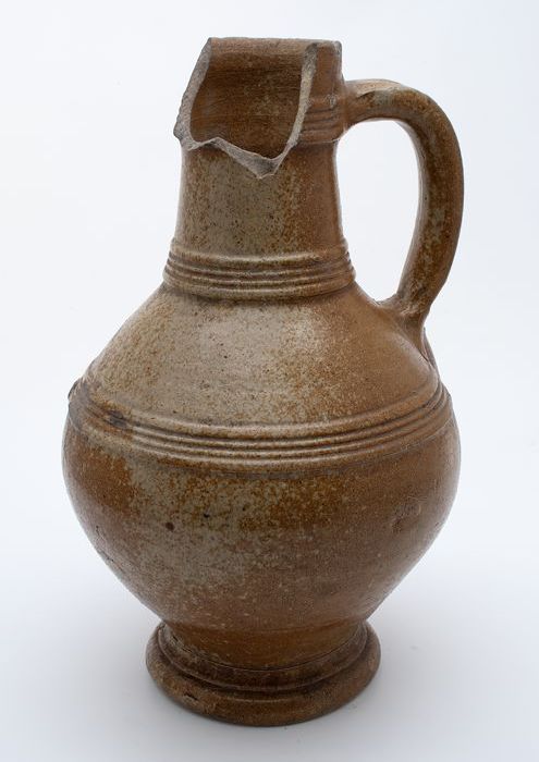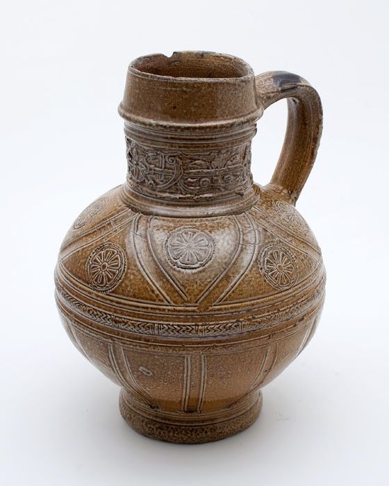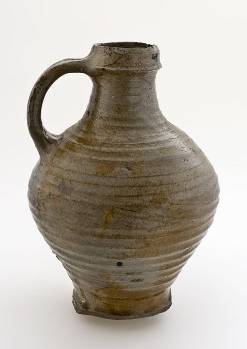 Grijze steengoed drinkkan, kan met draairingen rond ...