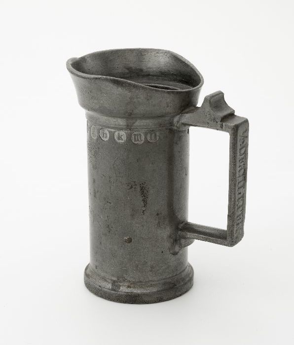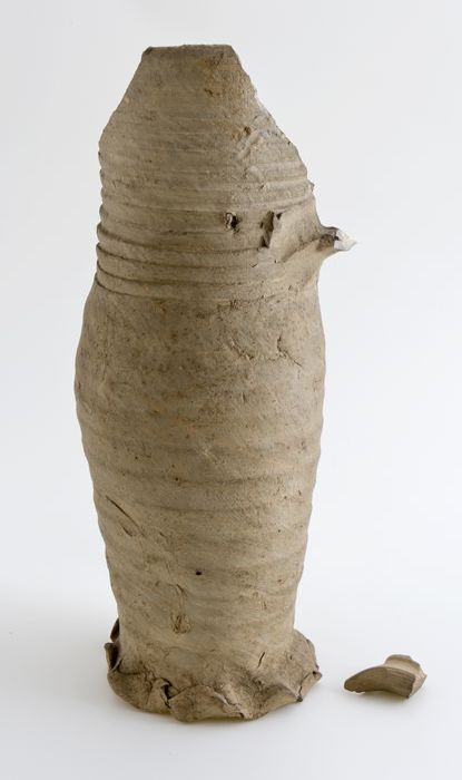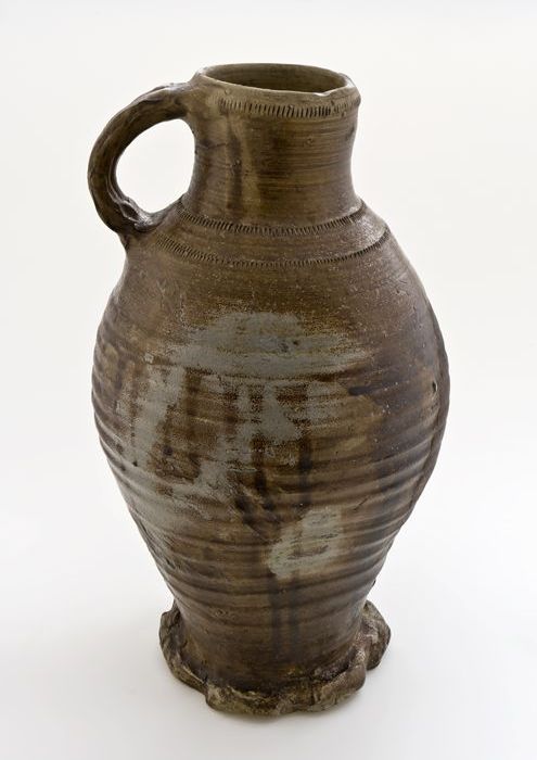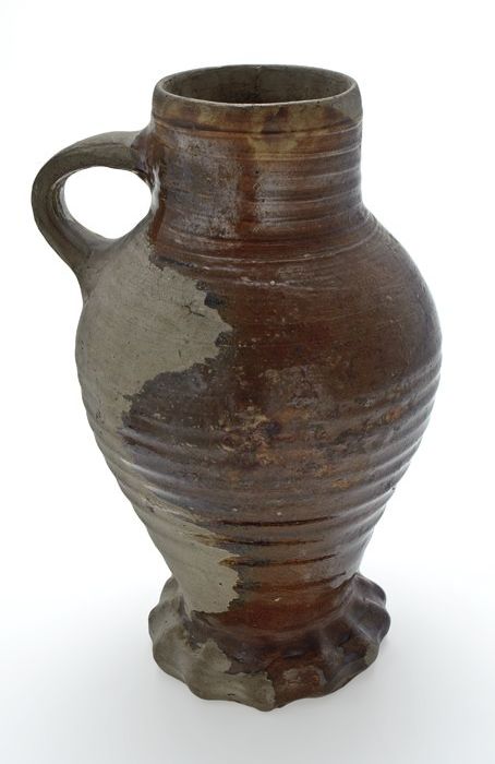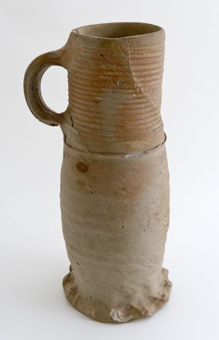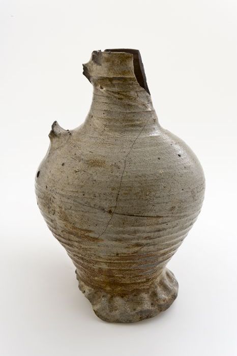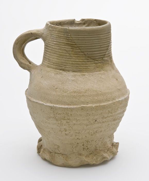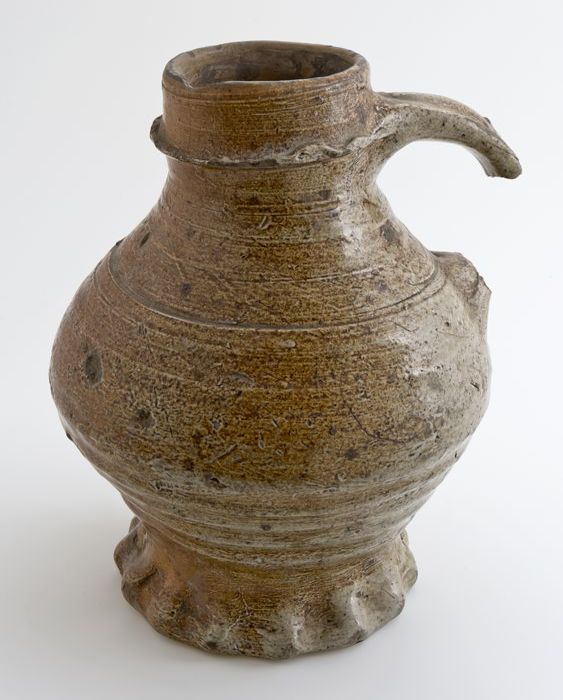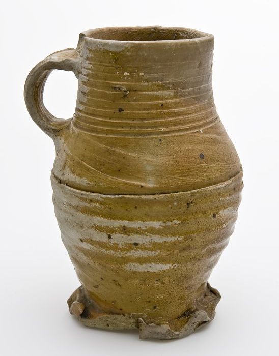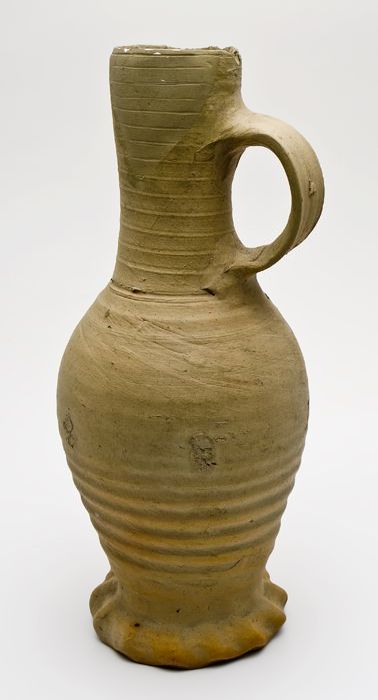 Grijze steengoed drinkkan, kan met draairingen rond ...