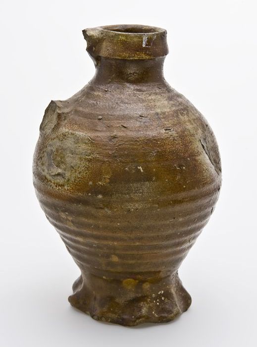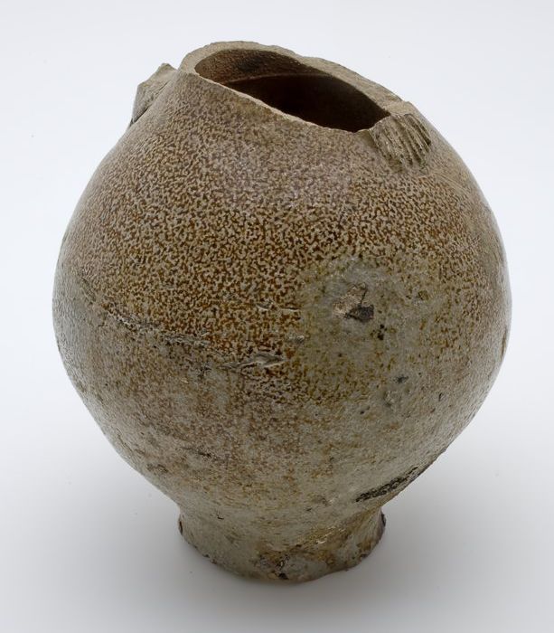 Kleine steengoed kruik met licht aangeknepen voet, g...