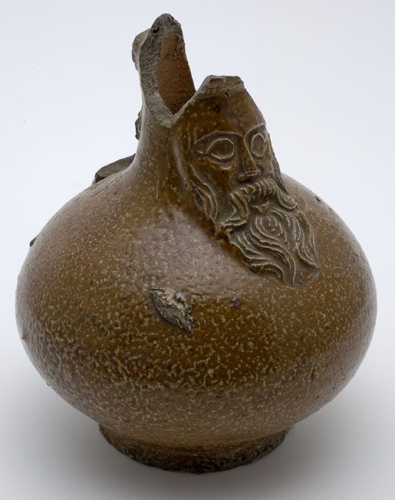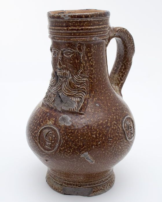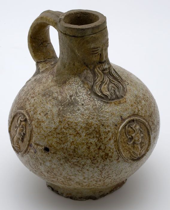 Kleine baardmankruik, rond buik drie portretmedaillons