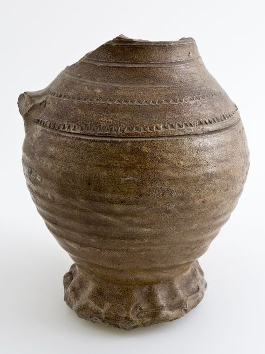 Grijze steengoed kruik met draairingen, buikmodel me...